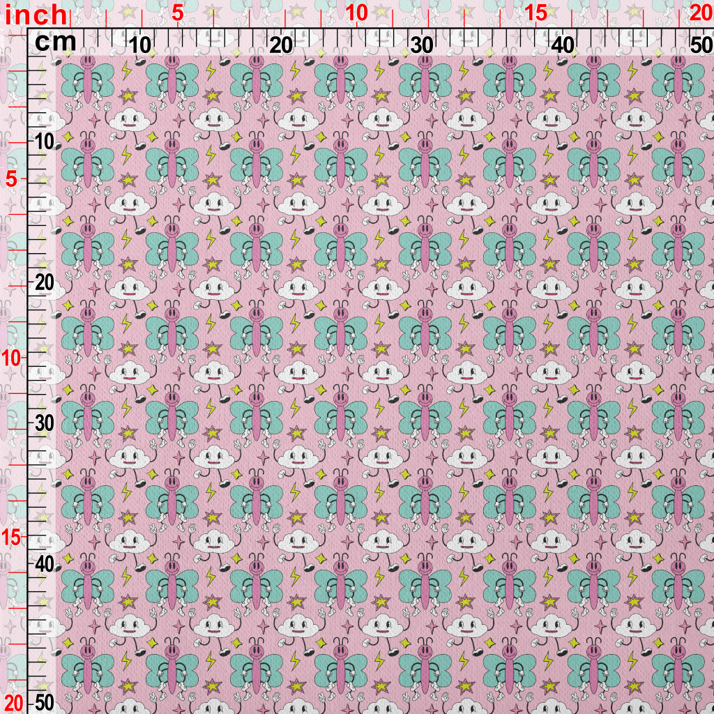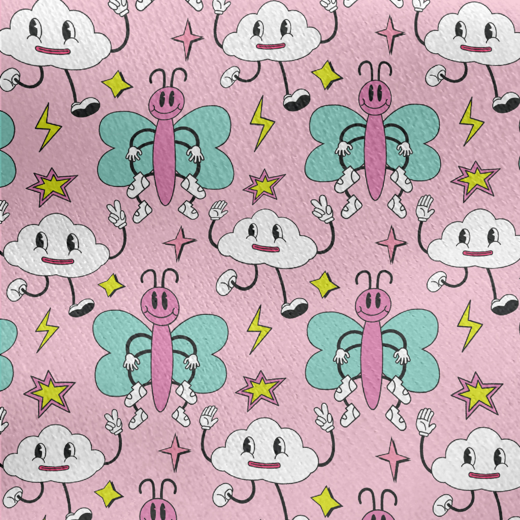 卡通粉色蝴蝶和雲朵刷毛布(幅寬150公分)