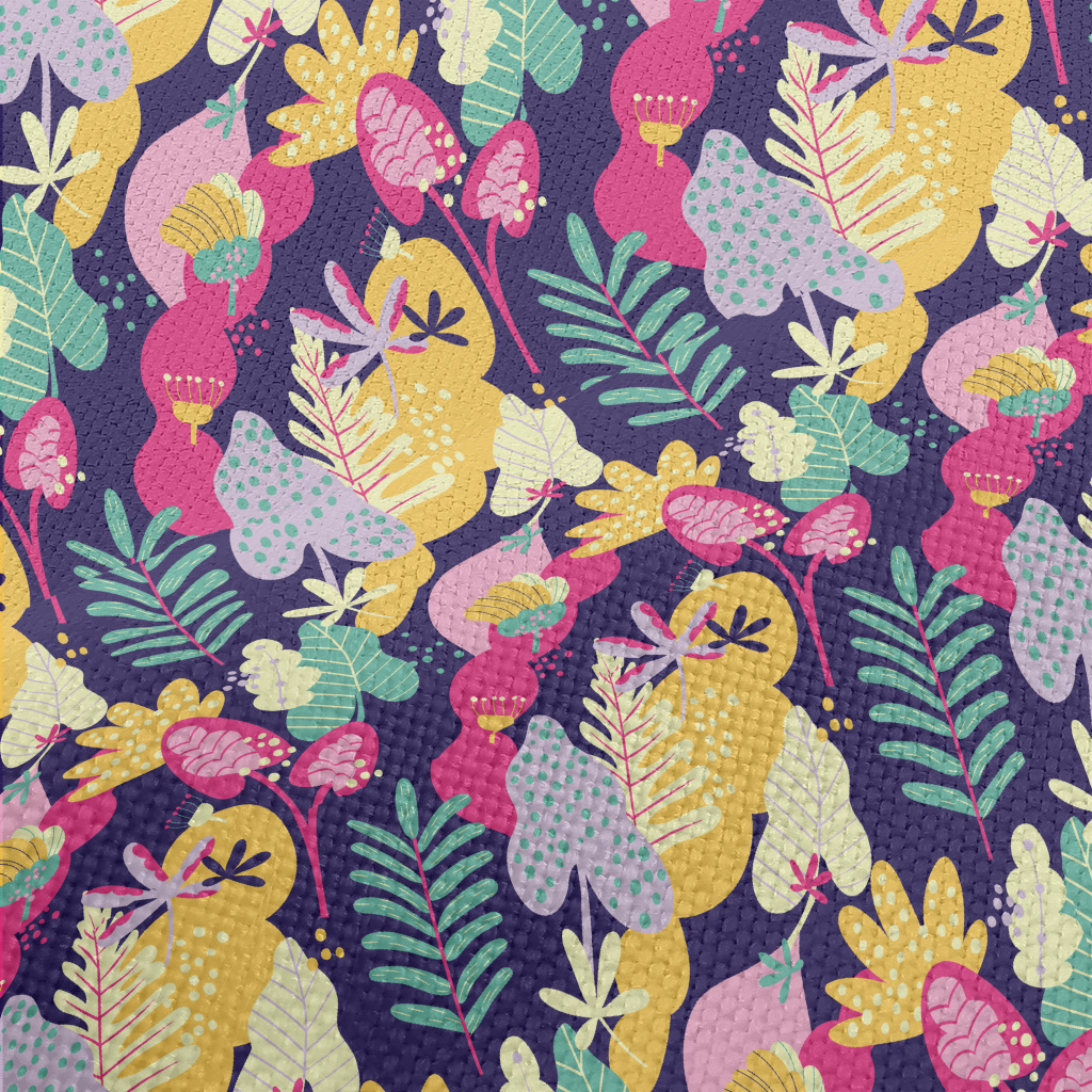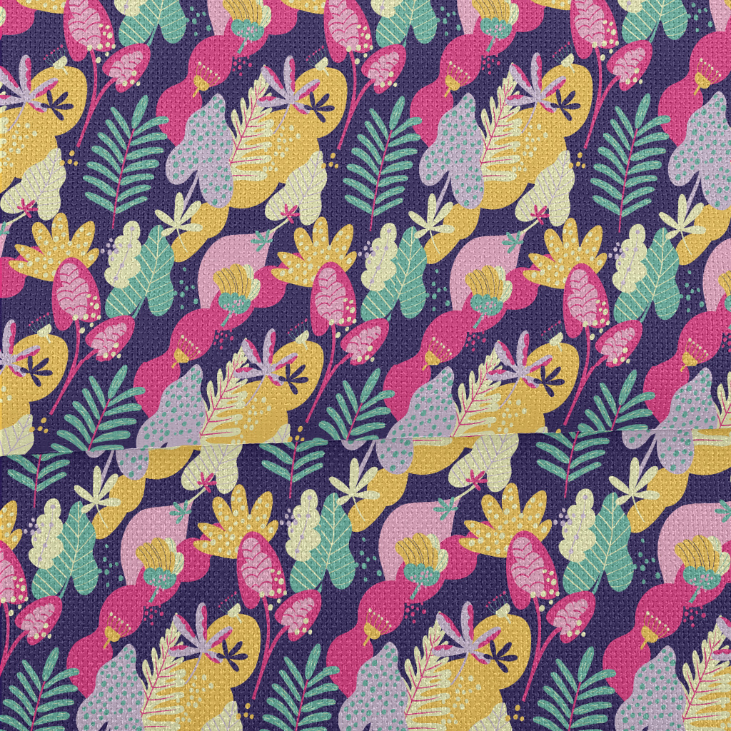 彩色手繪抽象樹葉麻布(幅寬150公分)