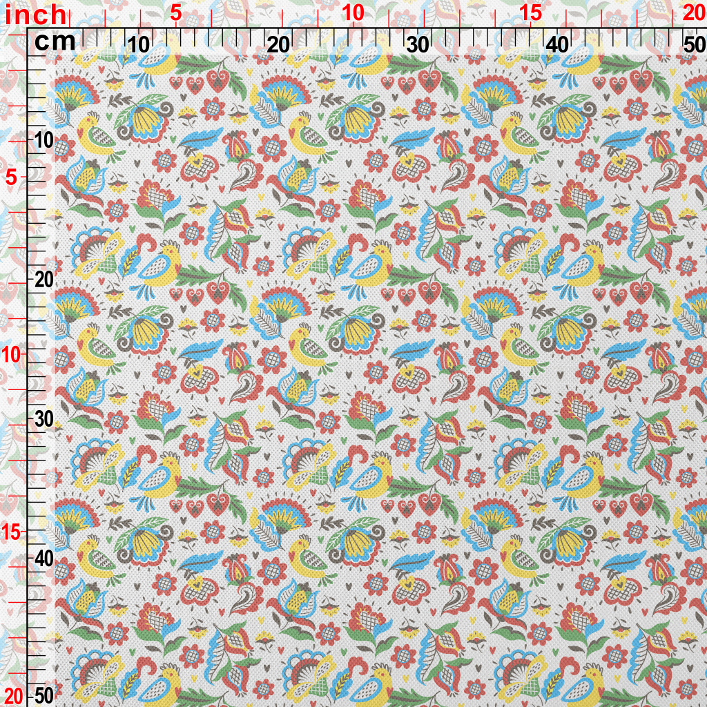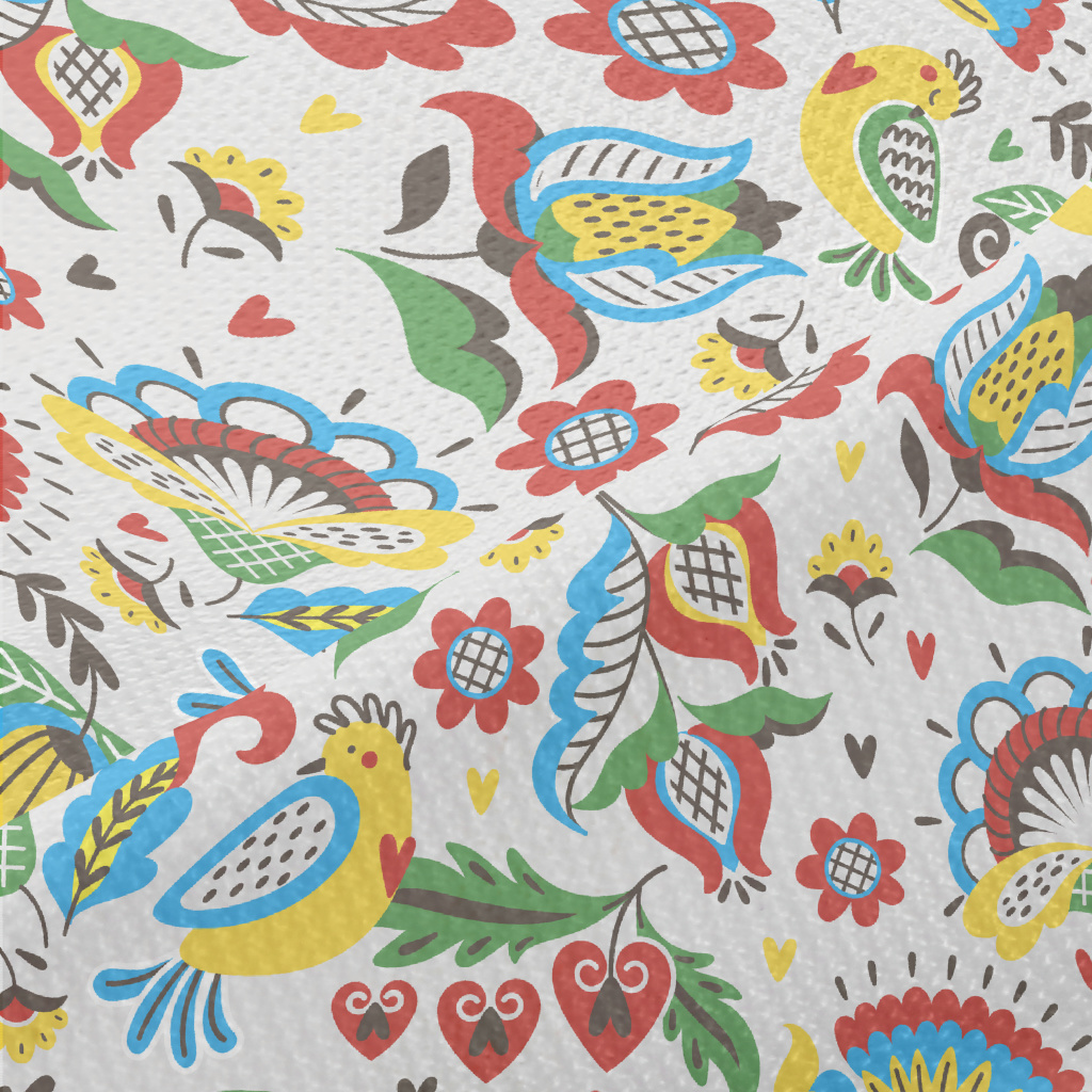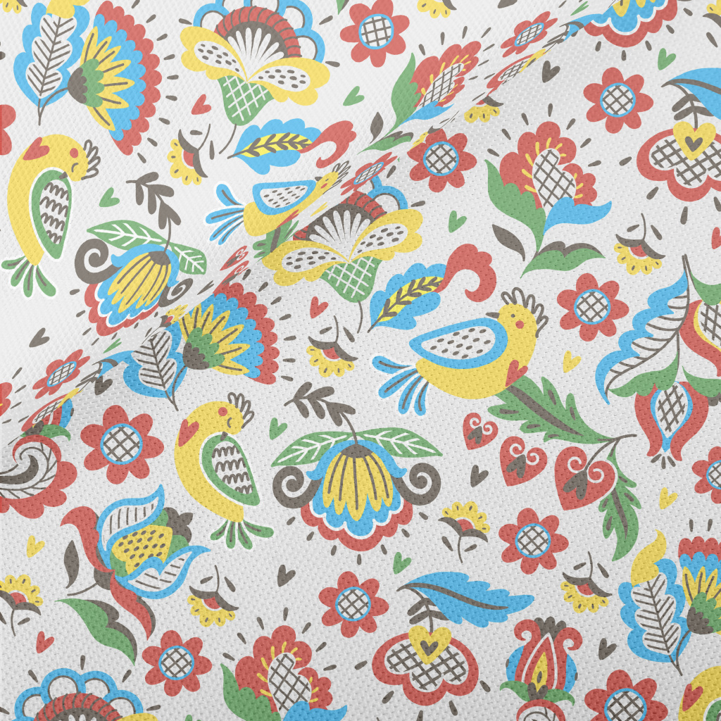 民俗風格的花卉與小鳥高爾布(幅寬180公分)