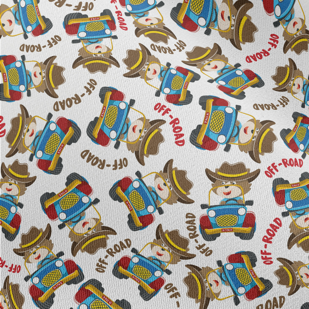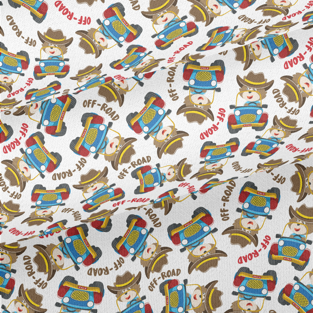 可愛狐狸駕駛越野車雪紡布(幅寬150公分)
