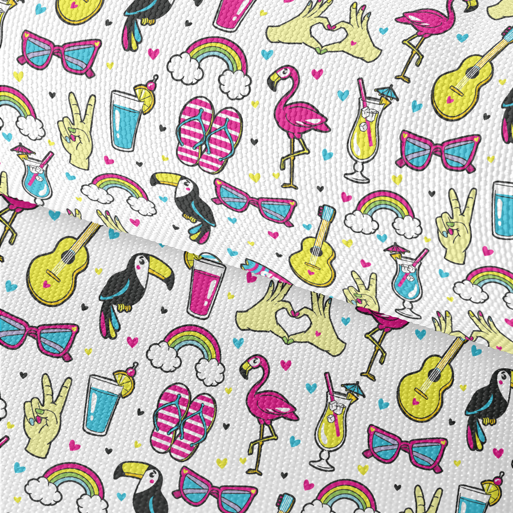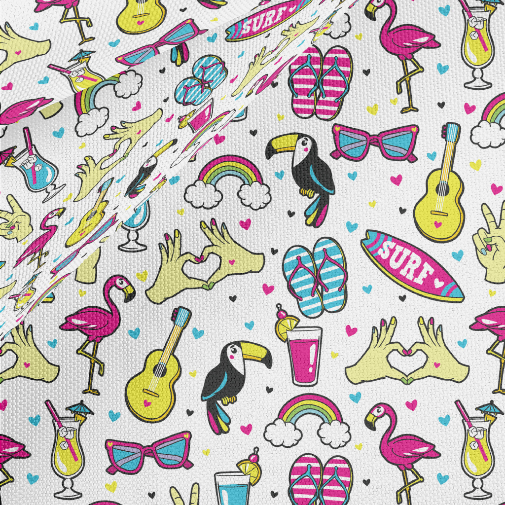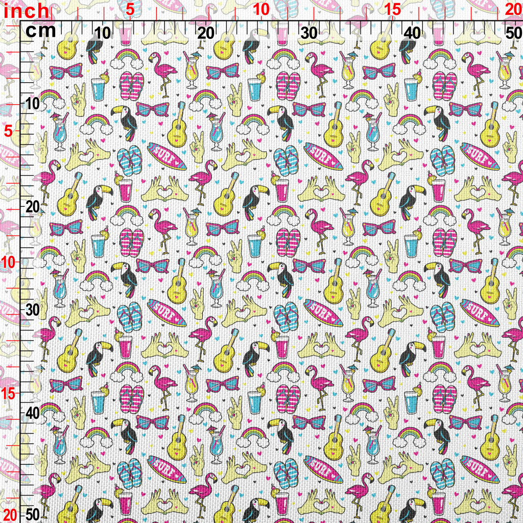 吉他紅鶴大嘴鳥彩虹圖案牛津布(幅寬150公分)