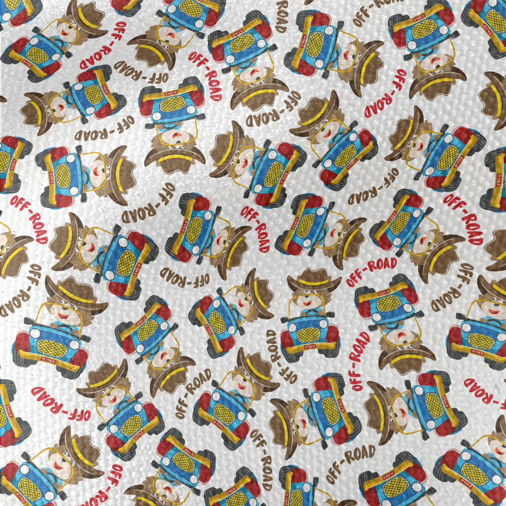 可愛狐狸駕駛越野車帆布(幅寬150公分)