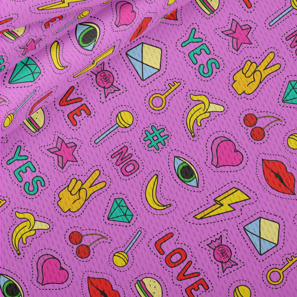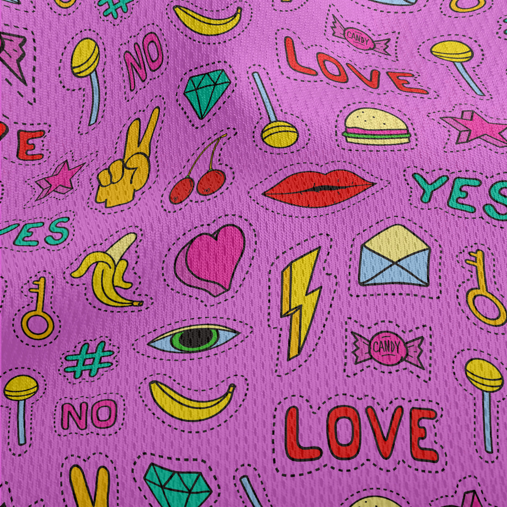 彩色食物閃電眼睛星星圖案鳥眼布(幅寬160公分)