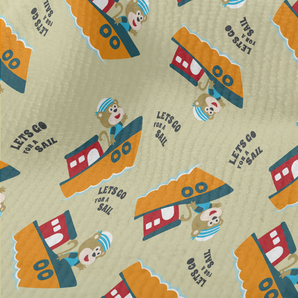 可愛水手猴子與大船毛巾布(幅寬160公分)