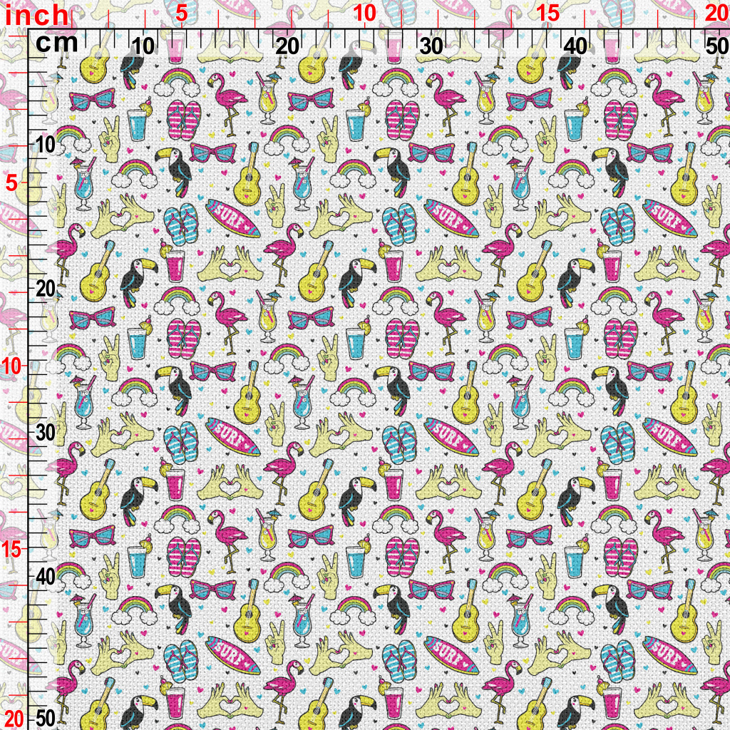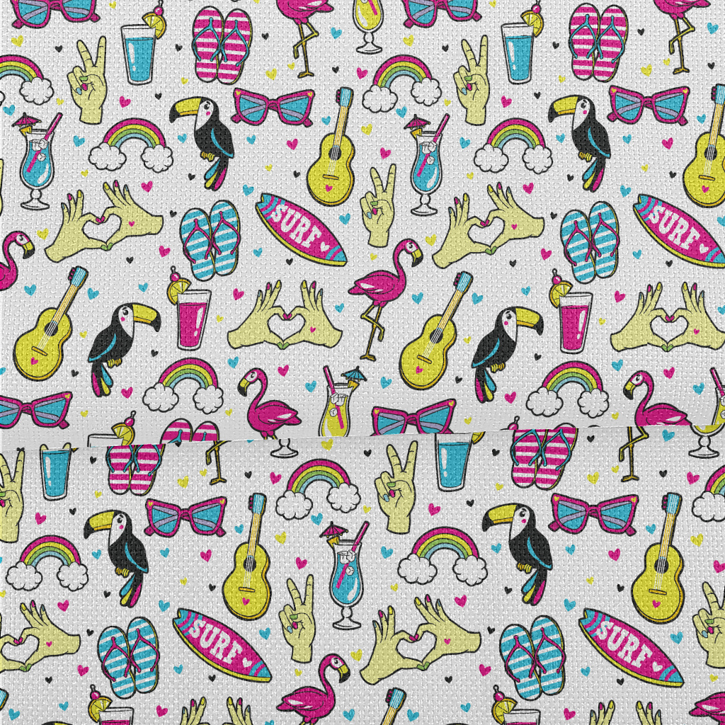 吉他紅鶴大嘴鳥彩虹圖案麻布(幅寬150公分)