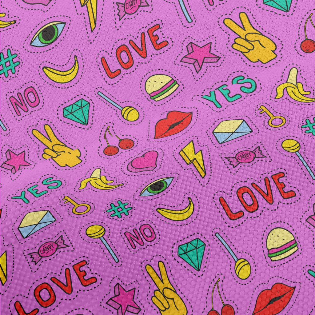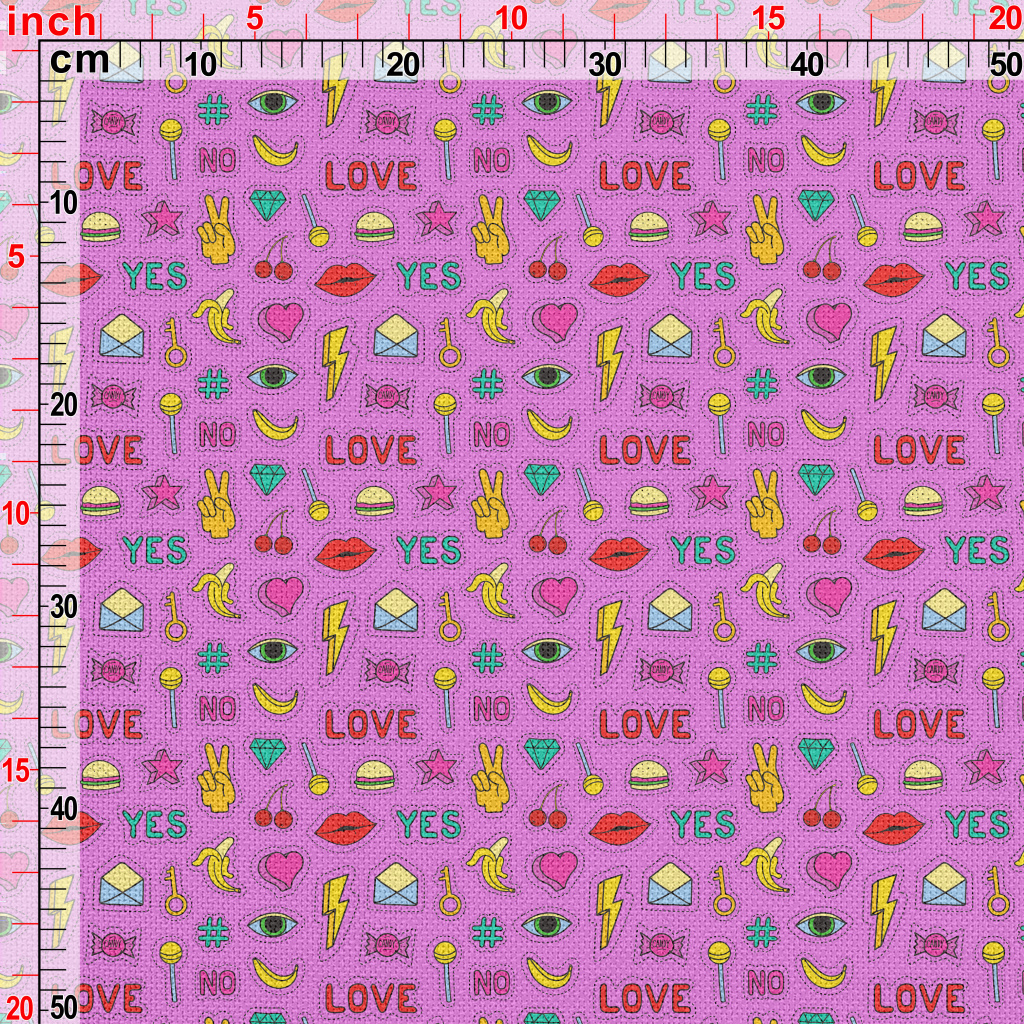 彩色食物閃電眼睛星星圖案麻布(幅寬150公分)
