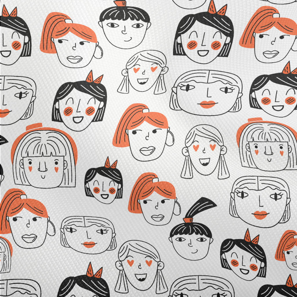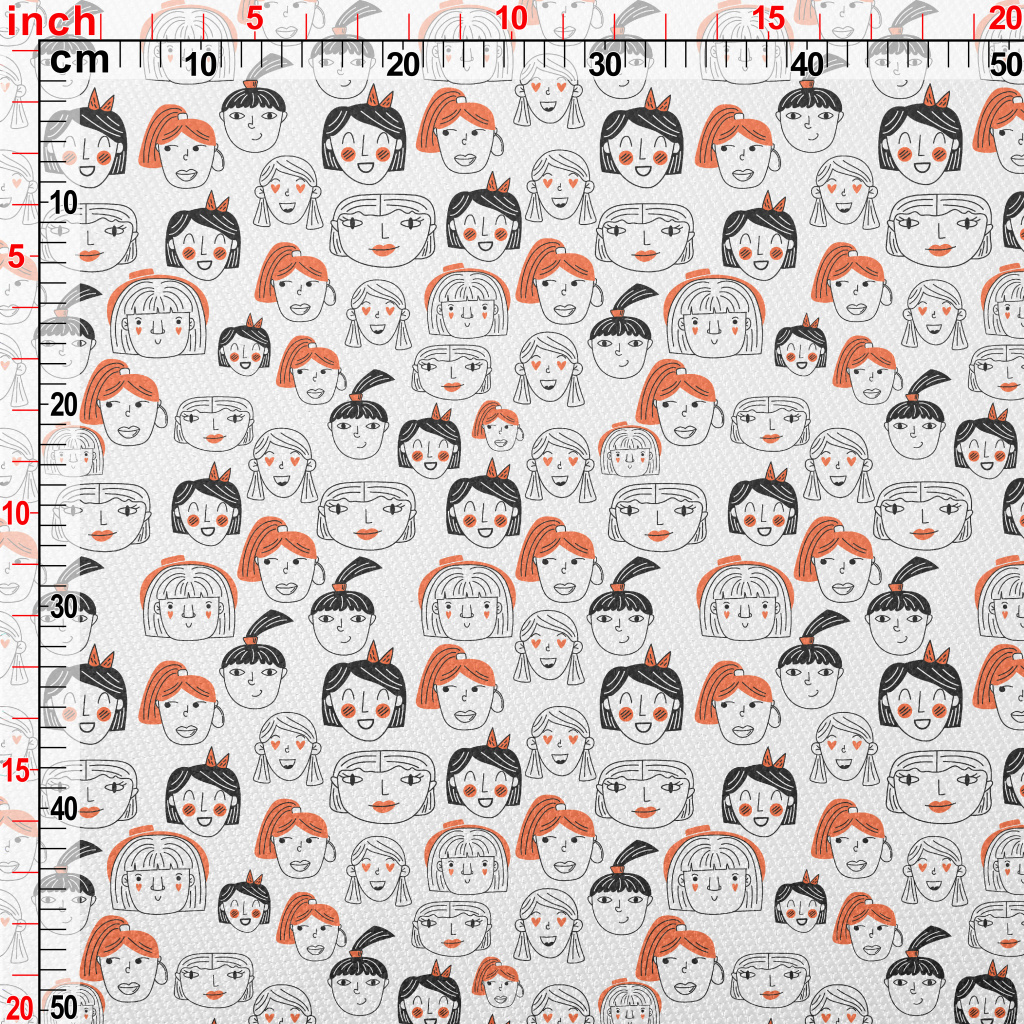 塗鴉線條各種女孩雙斜布(幅寬150公分)