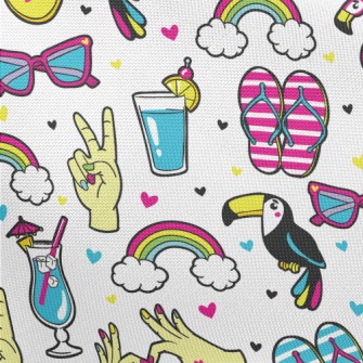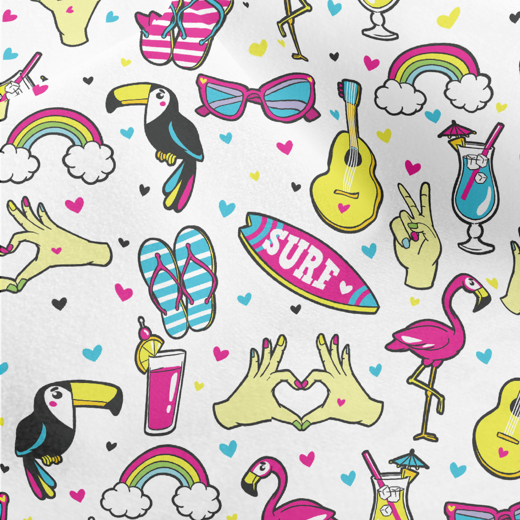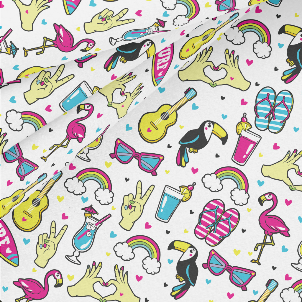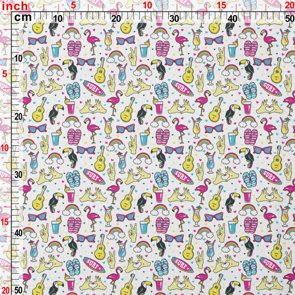 吉他紅鶴大嘴鳥彩虹圖案水晶絨(幅寬160公分)