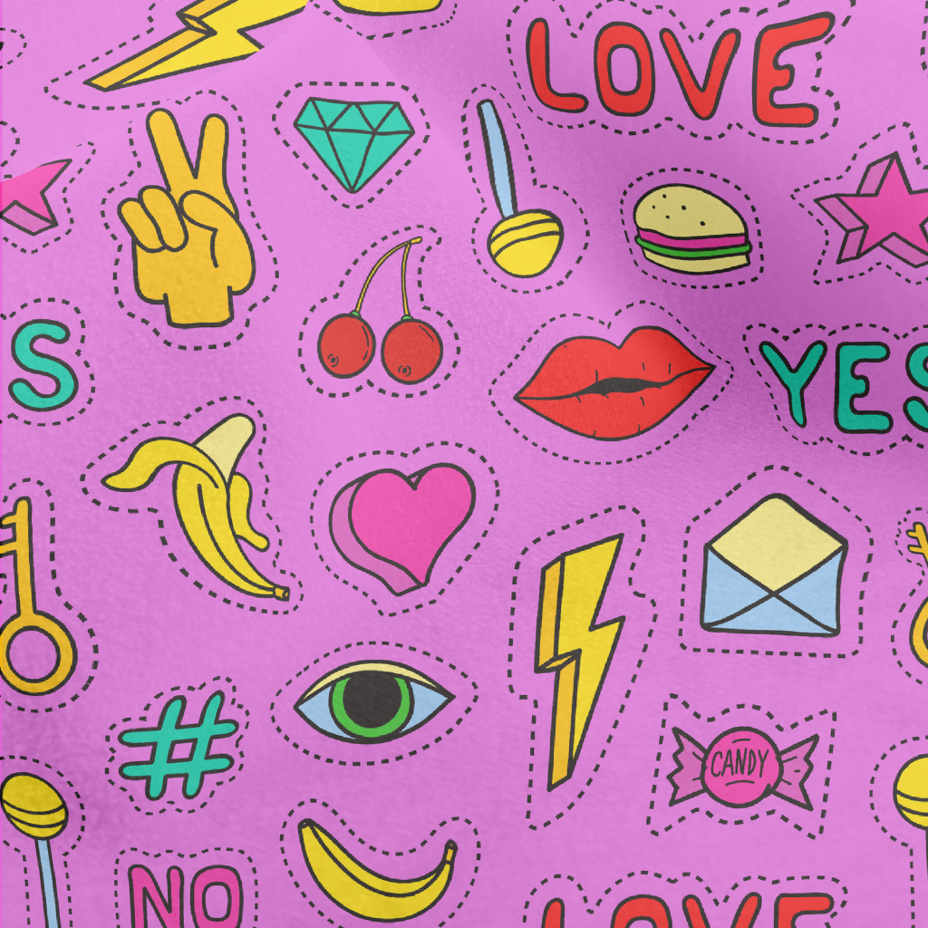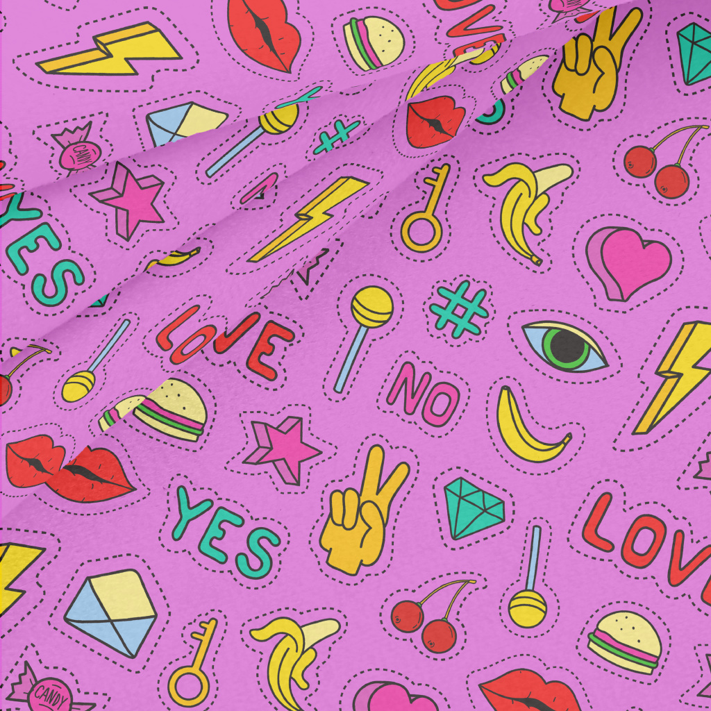 彩色食物閃電眼睛星星圖案水晶絨(幅寬160公分)