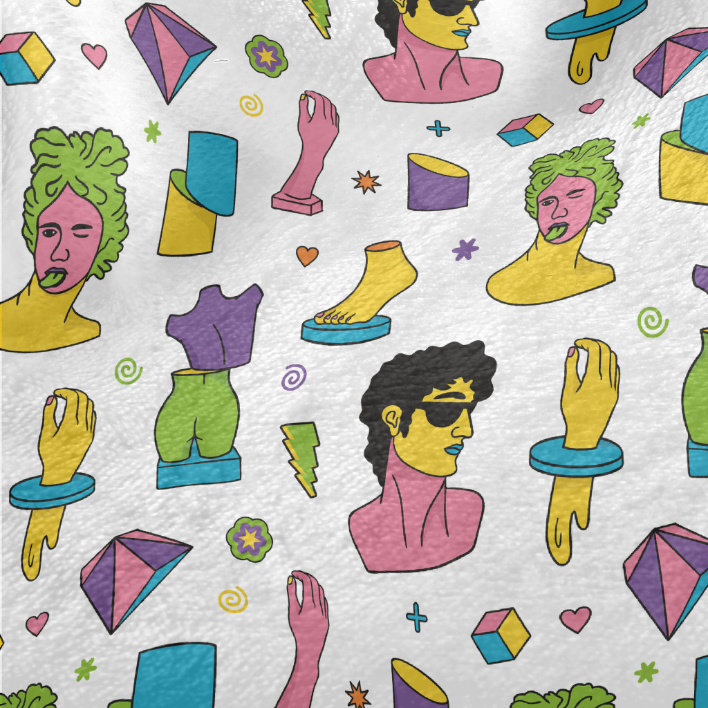 彩色希臘迷幻雕塑圖案法蘭絨(幅寬150公分)