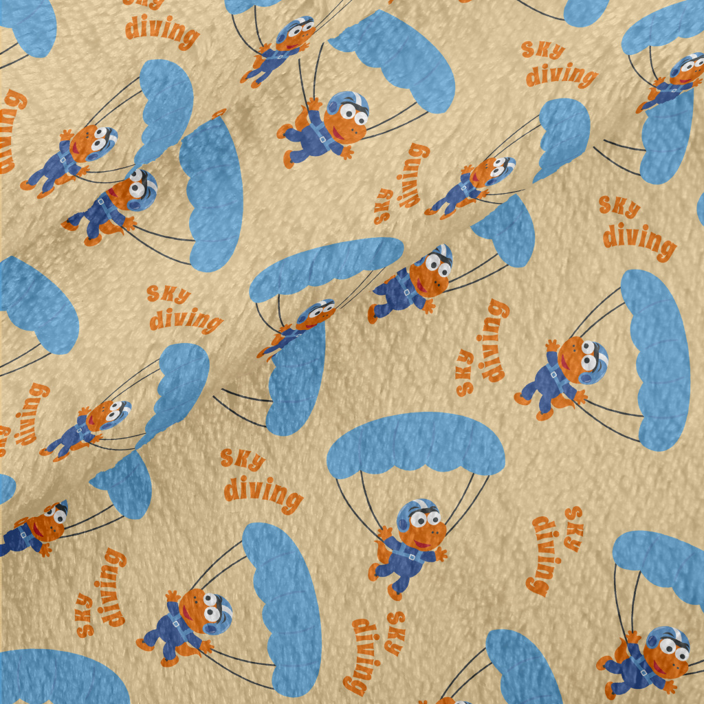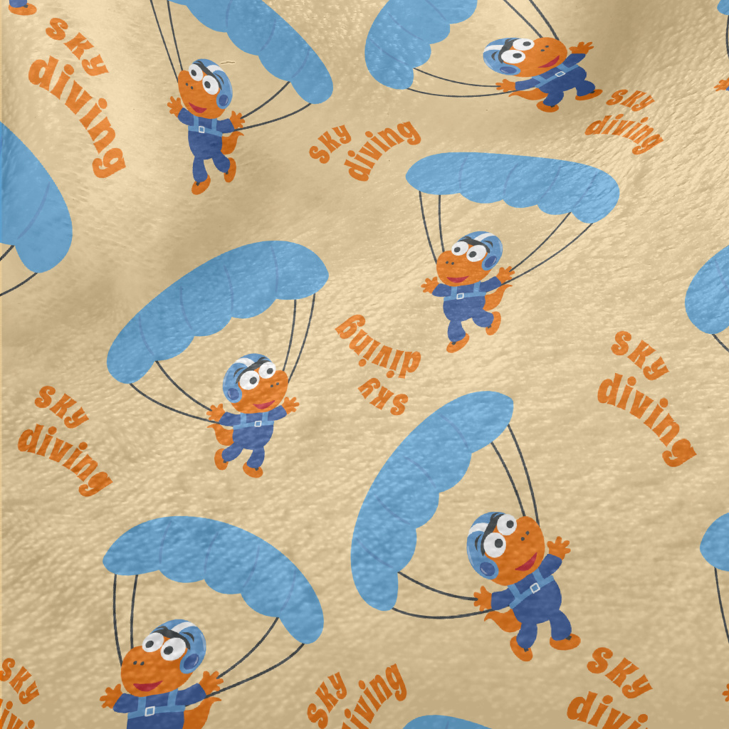 卡通恐龍跳傘法蘭絨(幅寬150公分)