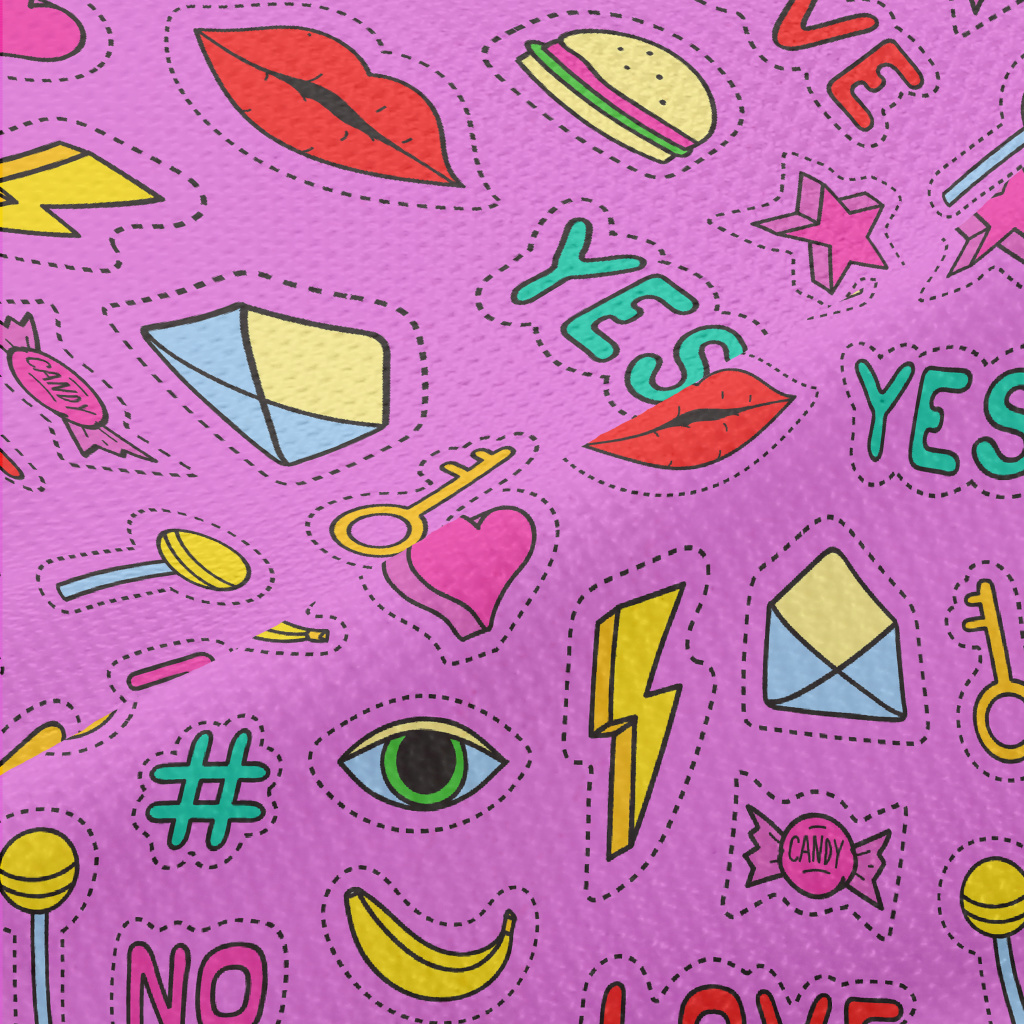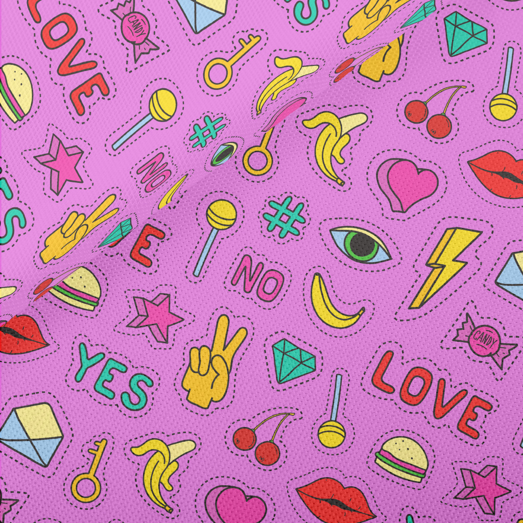 彩色食物閃電眼睛星星圖案高爾布(幅寬180公分)