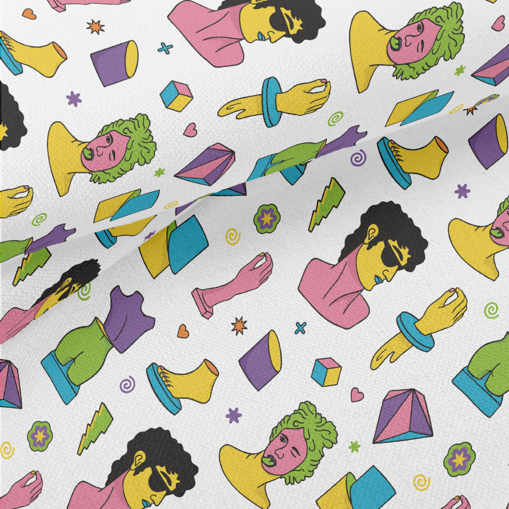 彩色希臘迷幻雕塑圖案竹節麻(幅寬150公分)