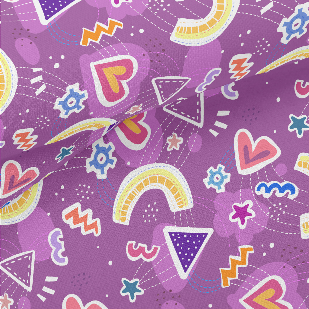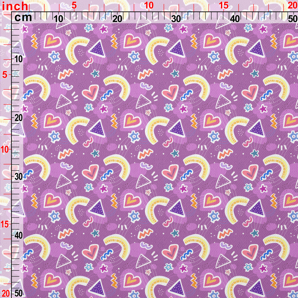 愛心彩虹不規則圖案竹節麻(幅寬150公分)