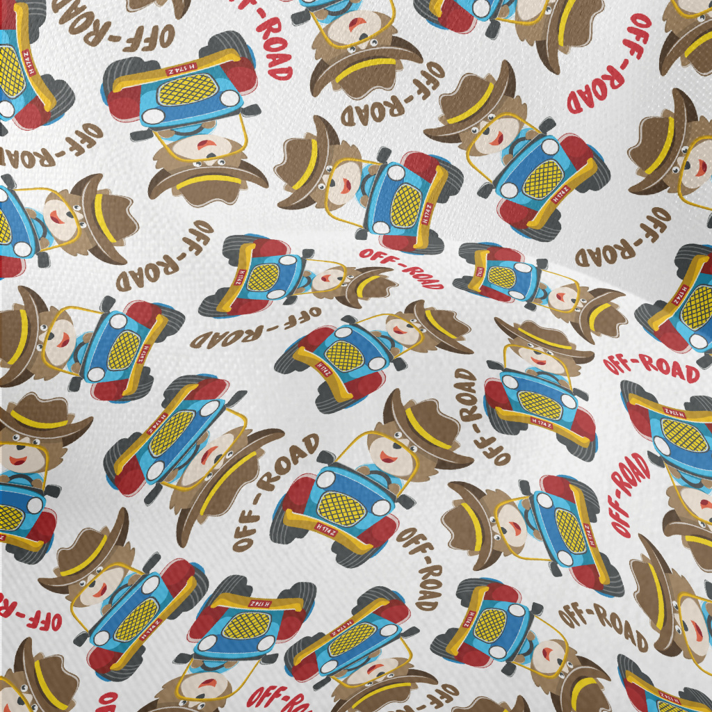 可愛狐狸駕駛越野車竹節麻(幅寬150公分)