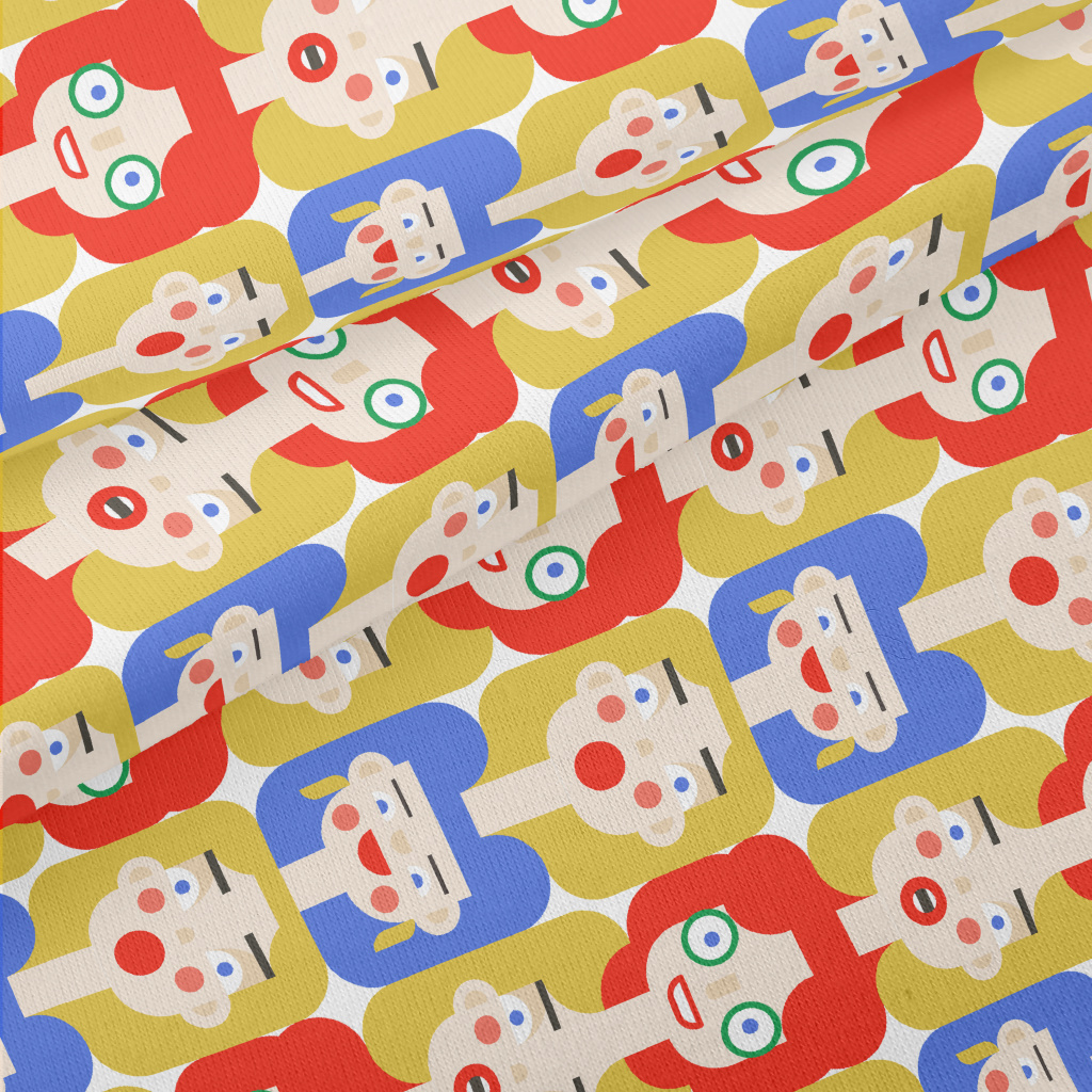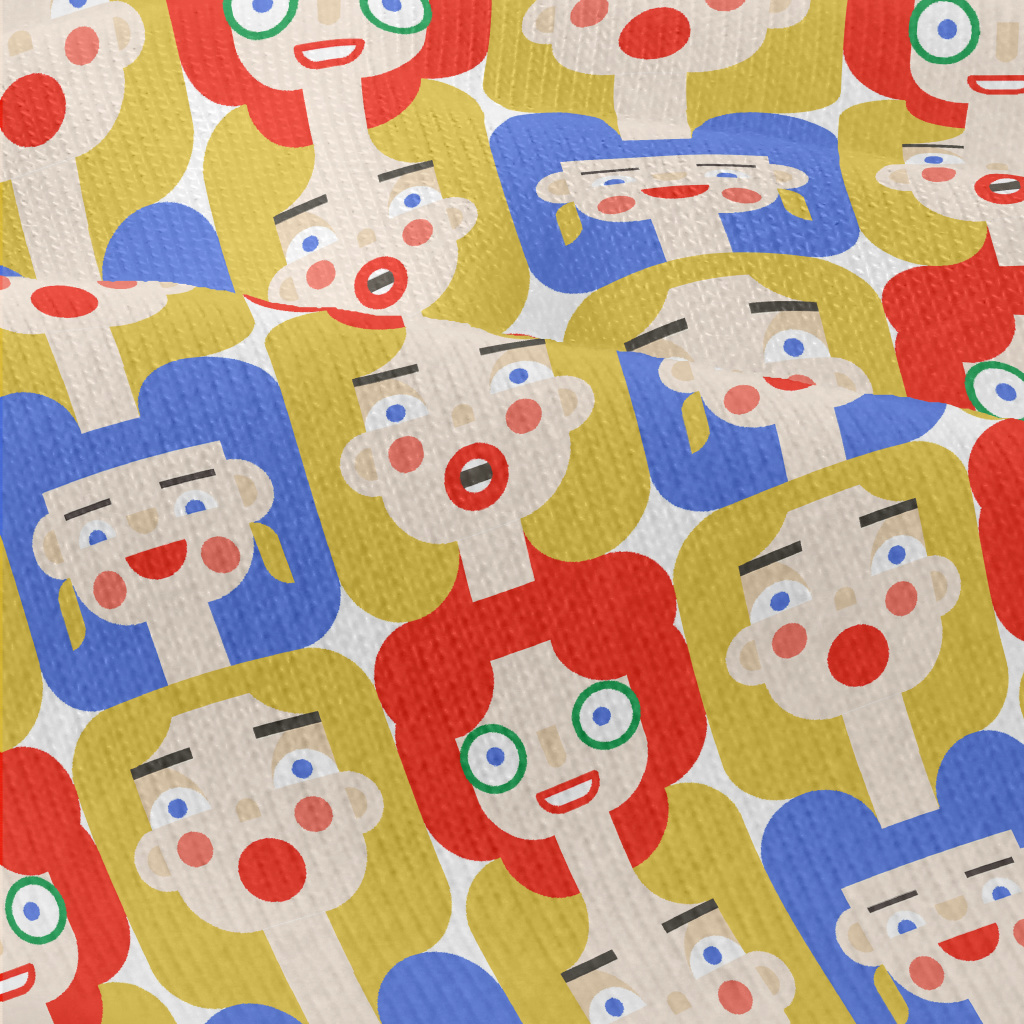 紅藍色頭髮的女性笑臉仿棉布(幅寬150公分)