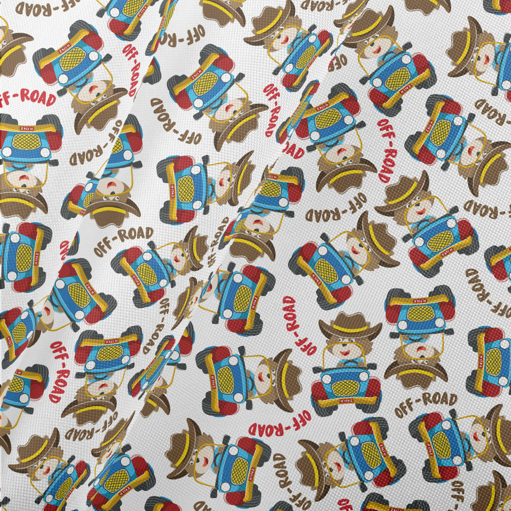 可愛狐狸駕駛越野車春亞紡(幅寬160公分)