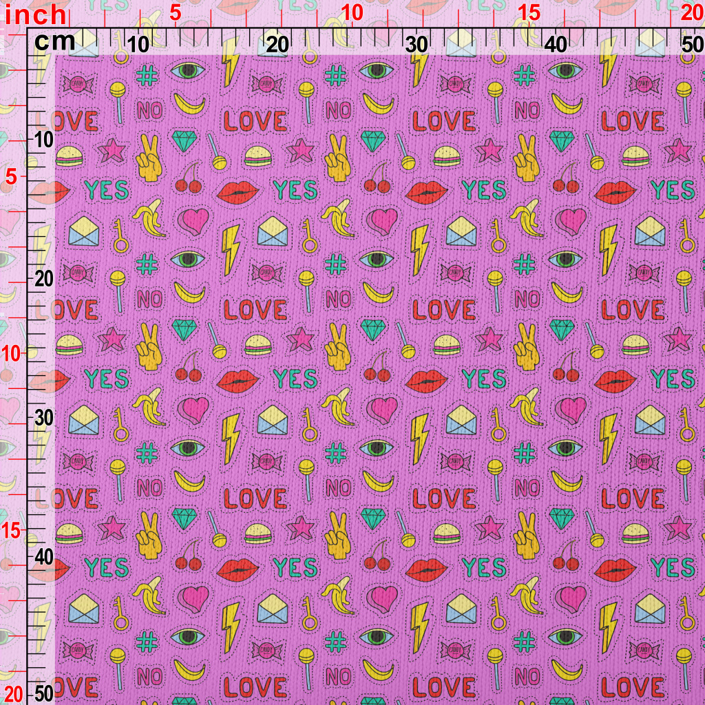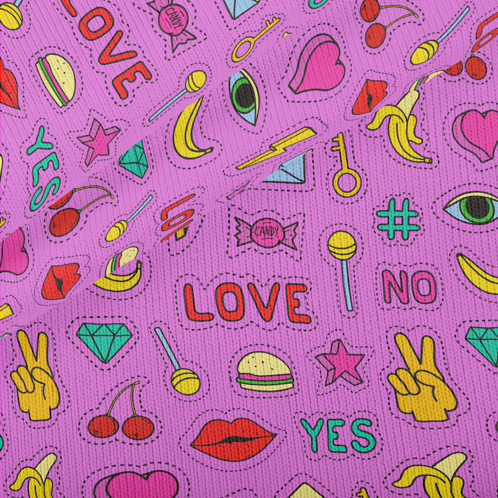彩色食物閃電眼睛星星圖案仿毛衣布(幅寬150公分)