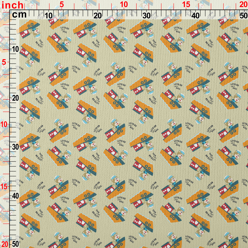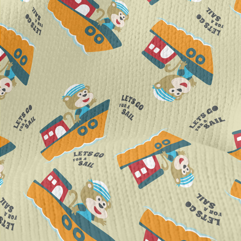 可愛水手猴子與大船仿毛衣布(幅寬150公分)