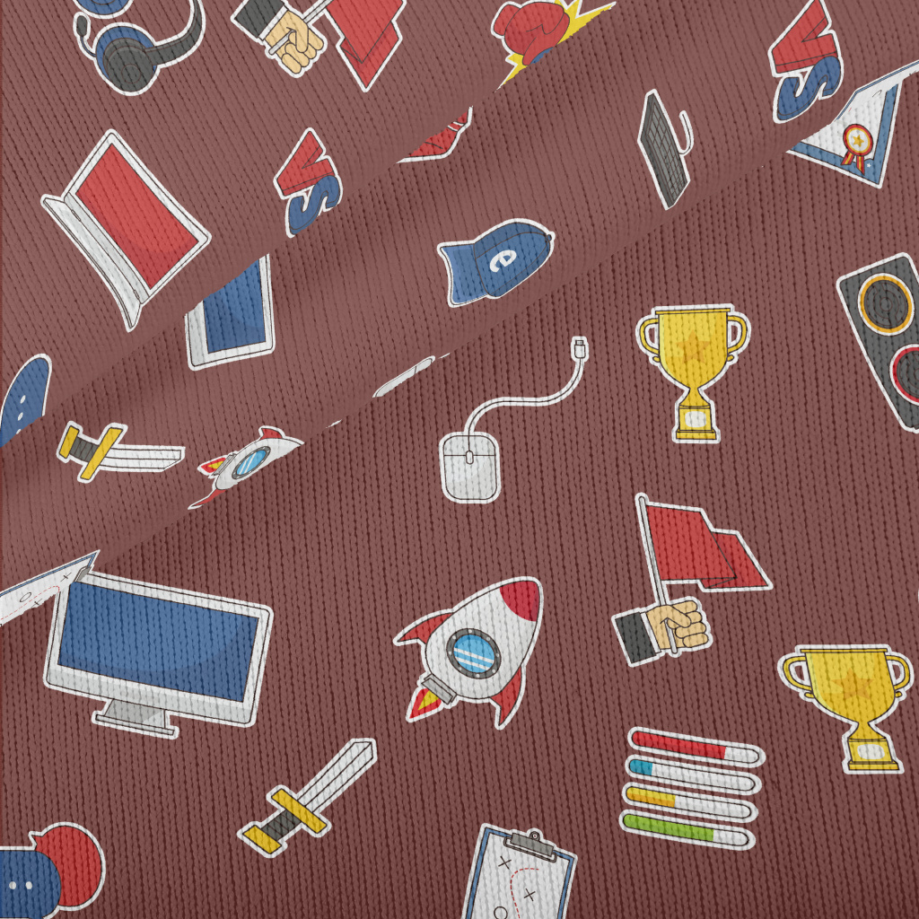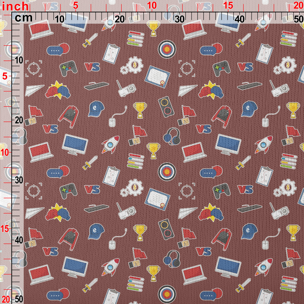 電腦與電腦遊戲圖案仿毛衣布(幅寬150公分)