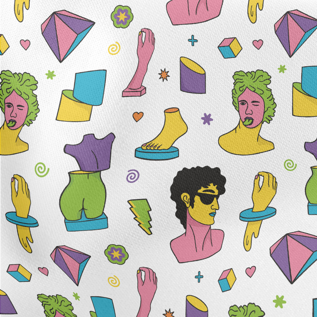 彩色希臘迷幻雕塑圖案薄棉布(幅寬150公分)