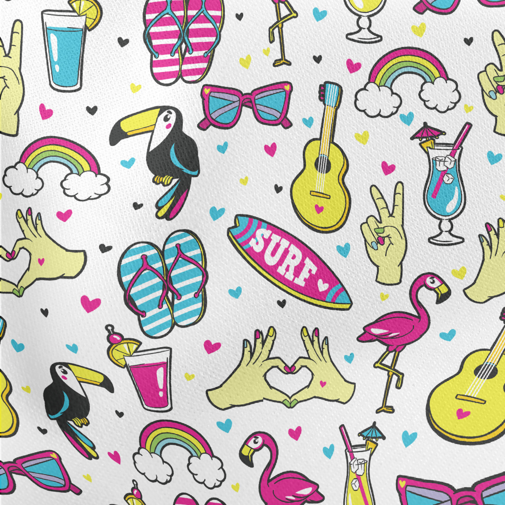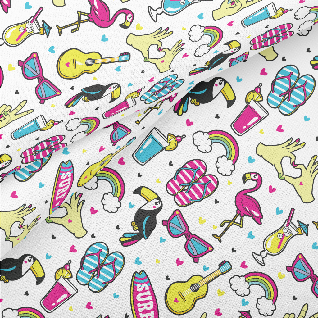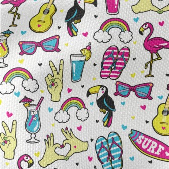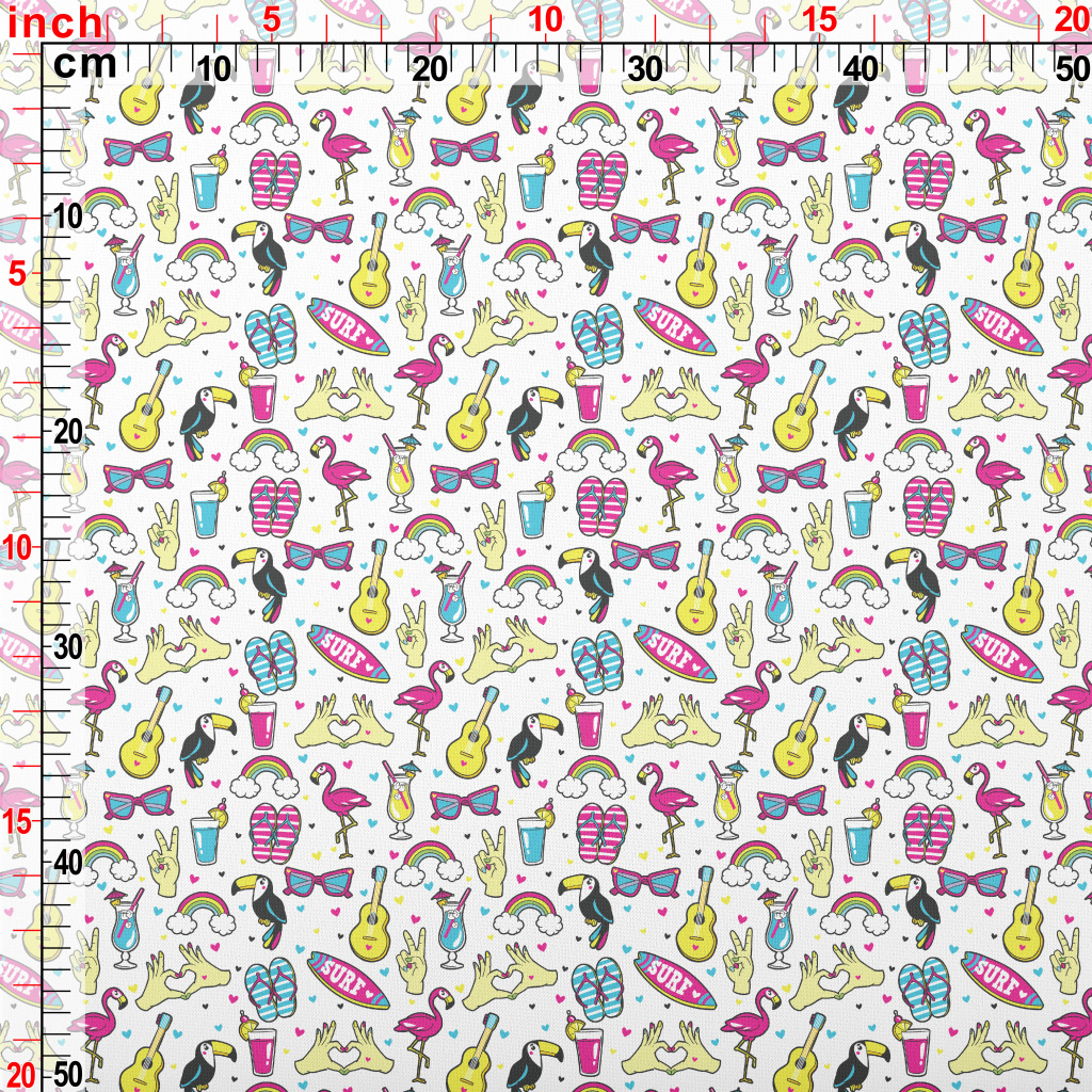 吉他紅鶴大嘴鳥彩虹圖案薄棉布(幅寬150公分)