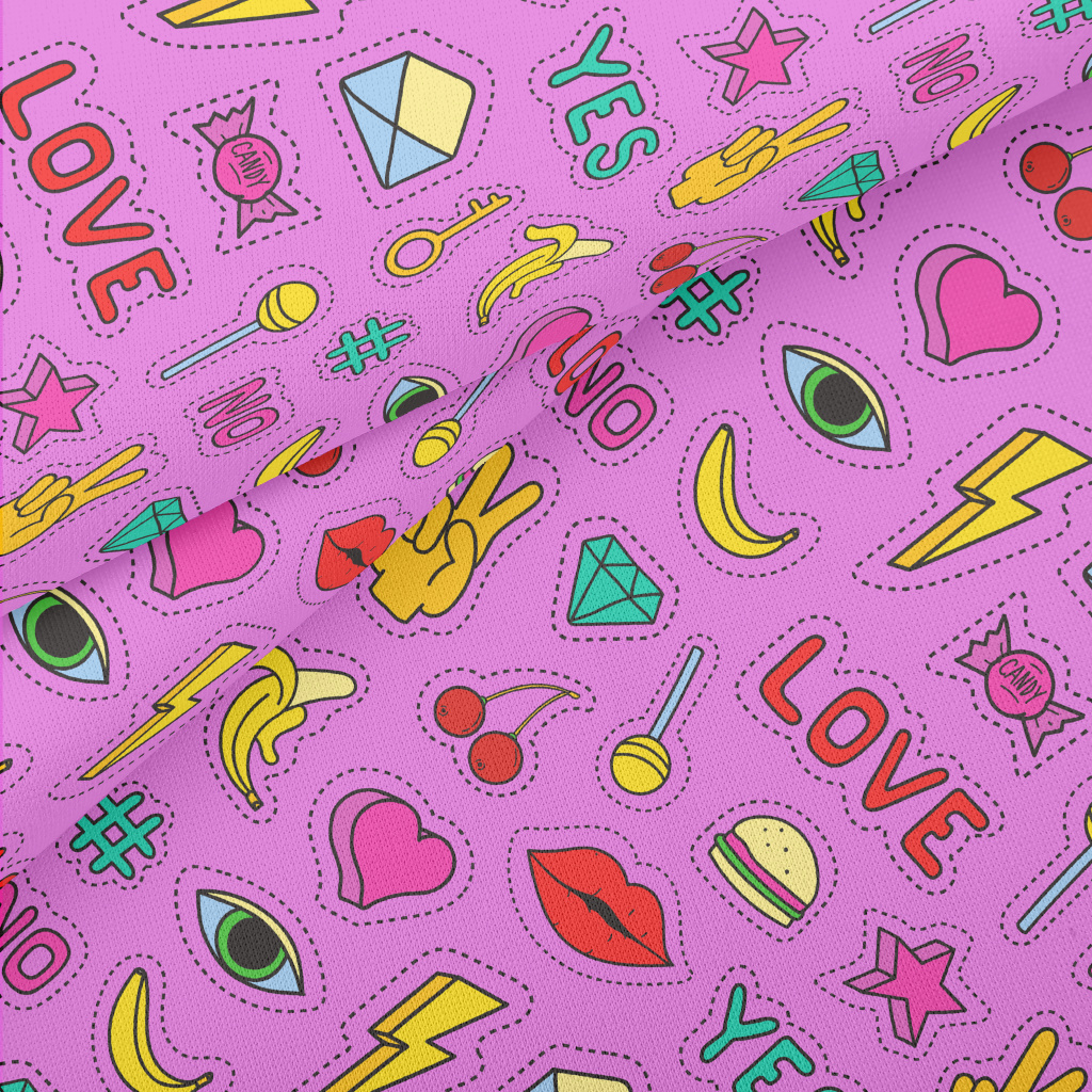 彩色食物閃電眼睛星星圖案薄棉布(幅寬150公分)