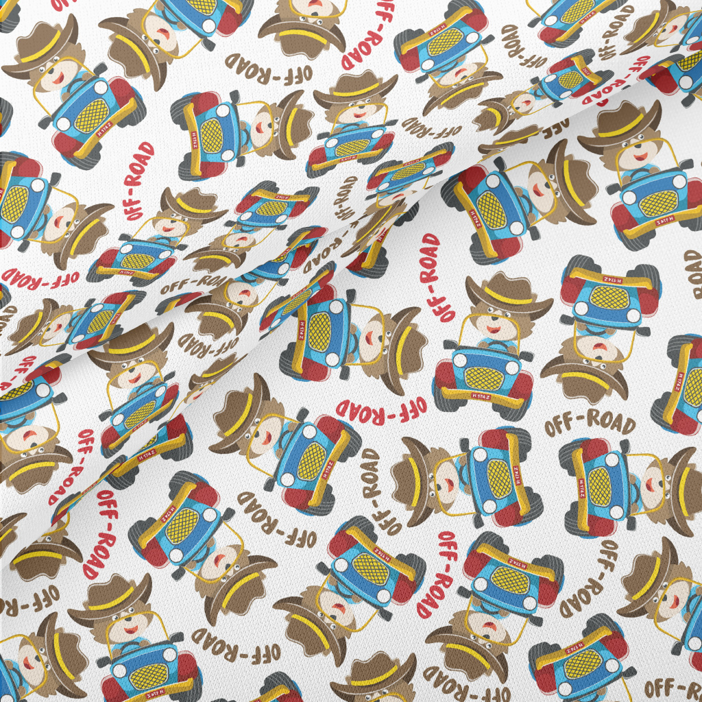 可愛狐狸駕駛越野車薄棉布(幅寬150公分)