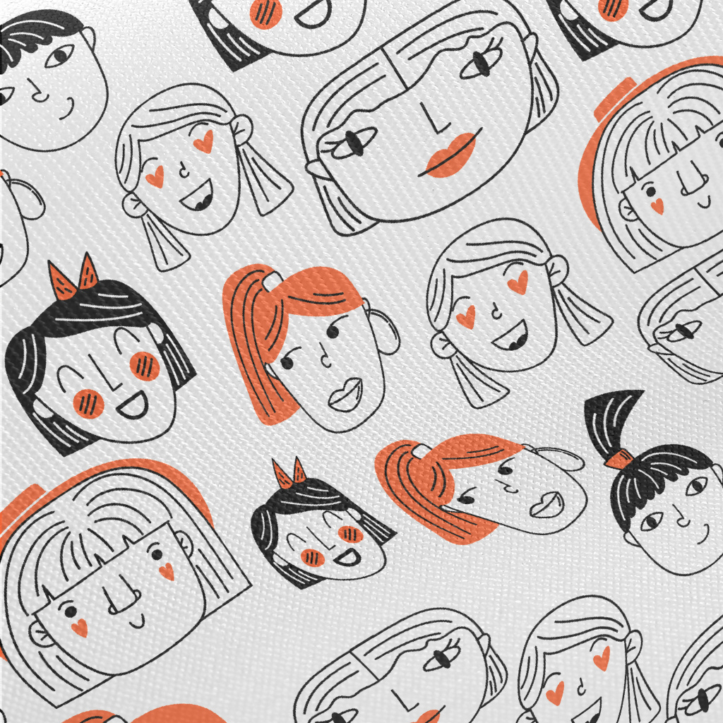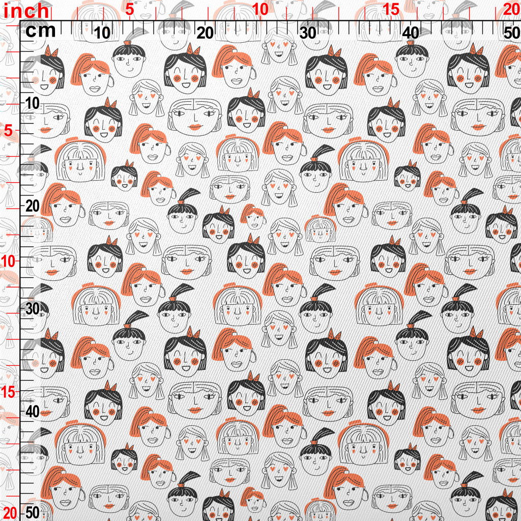 塗鴉線條各種女孩厚棉布(幅寬150公分)