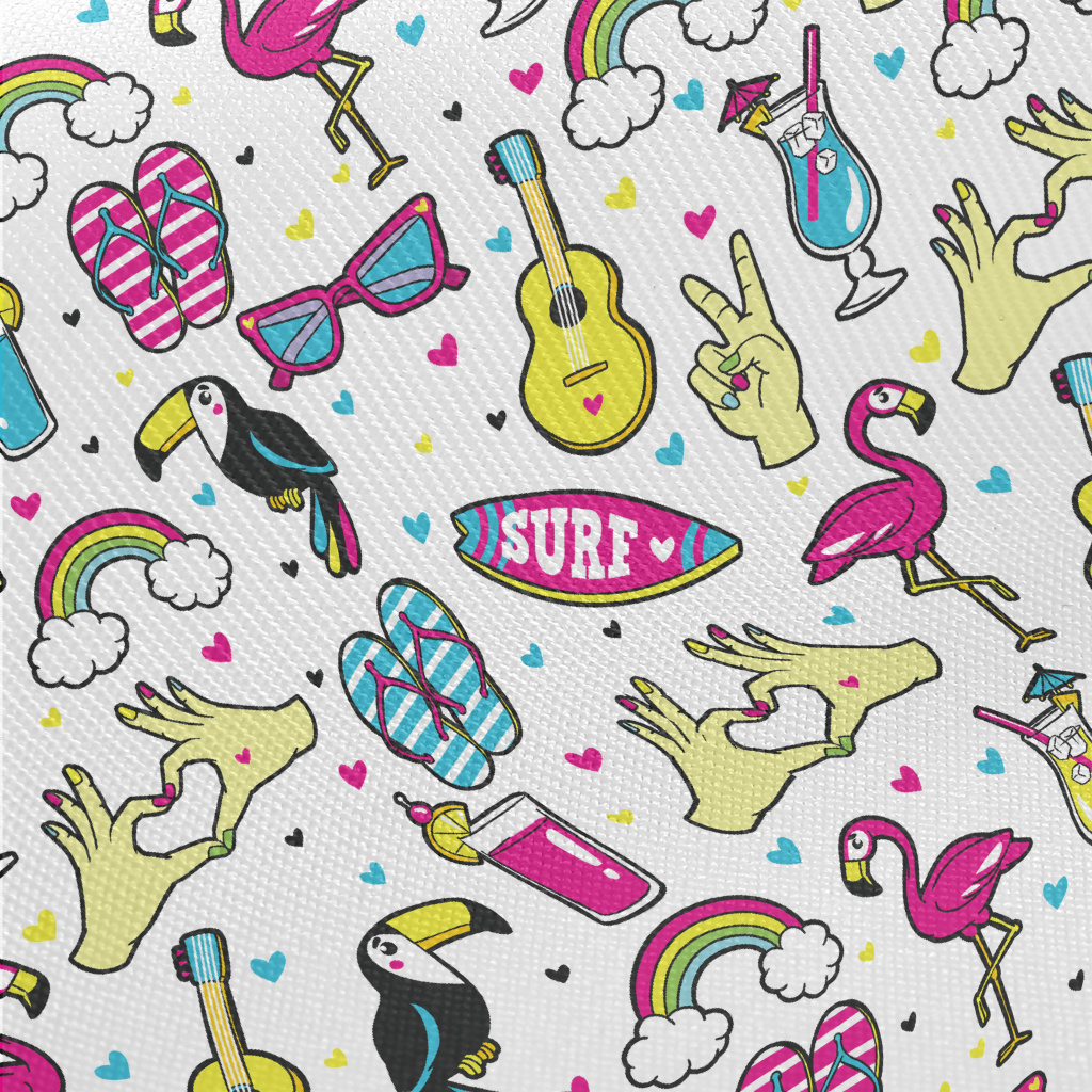 吉他紅鶴大嘴鳥彩虹圖案厚棉布(幅寬150公分)