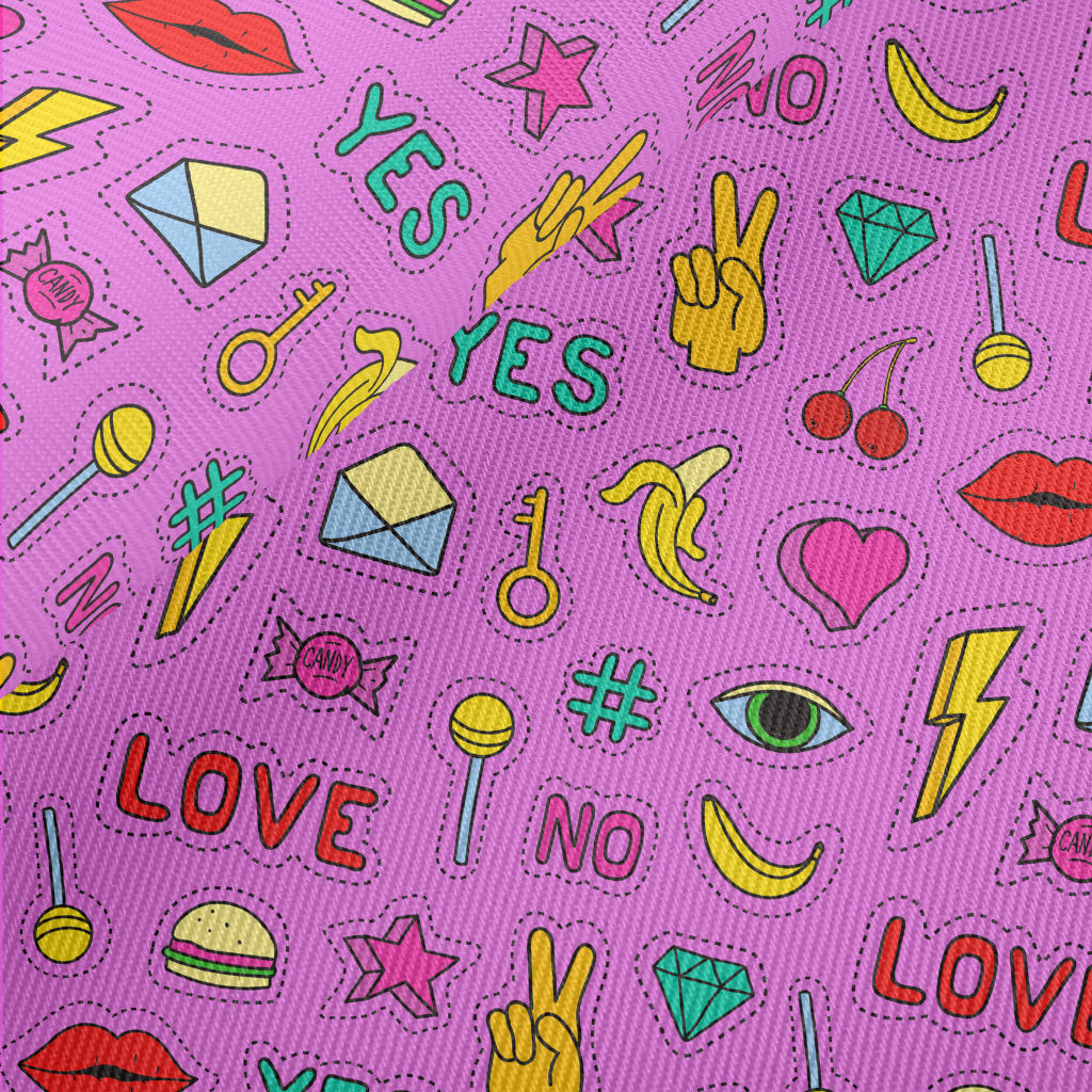 彩色食物閃電眼睛星星圖案厚棉布(幅寬150公分)
