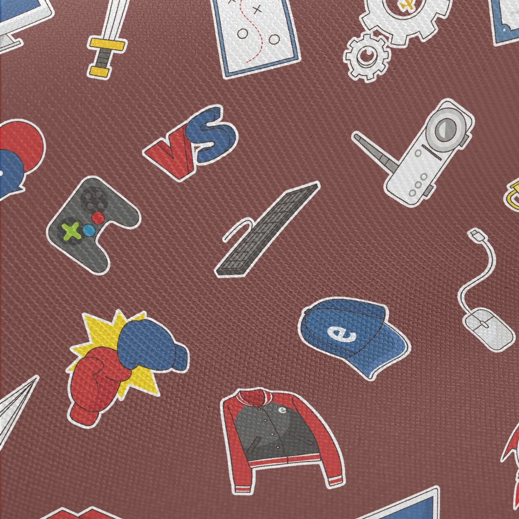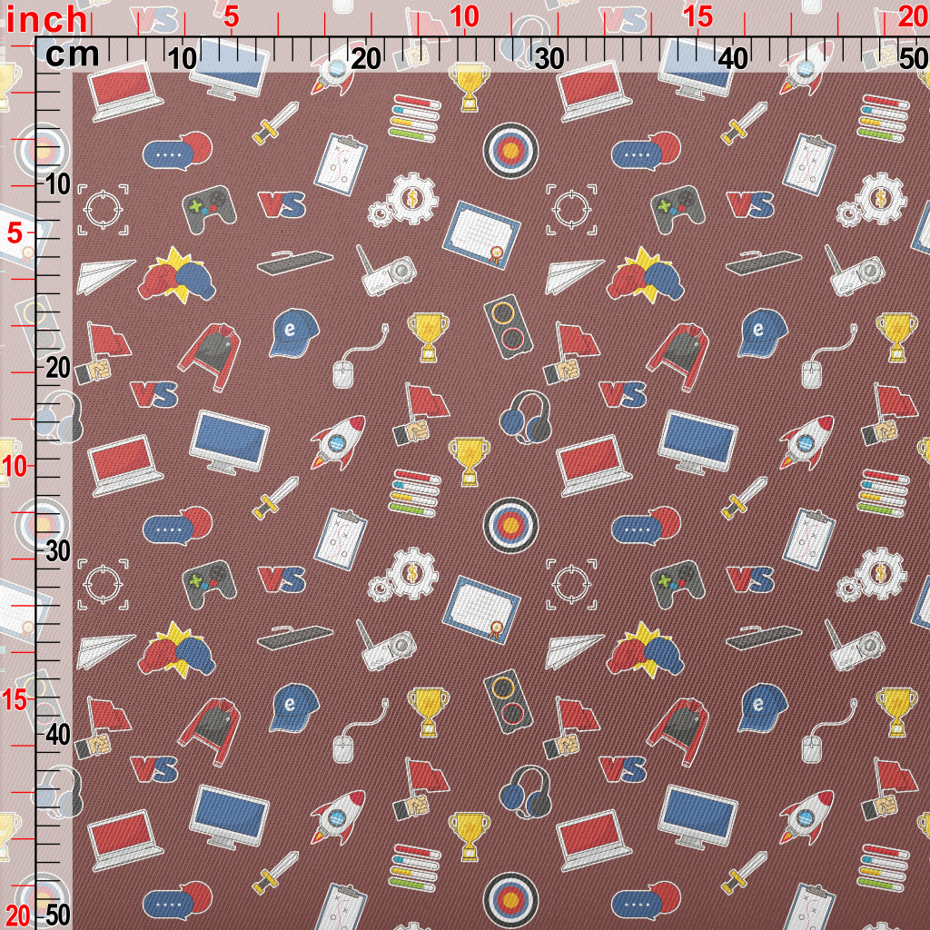 電腦與電腦遊戲圖案厚棉布(幅寬150公分)