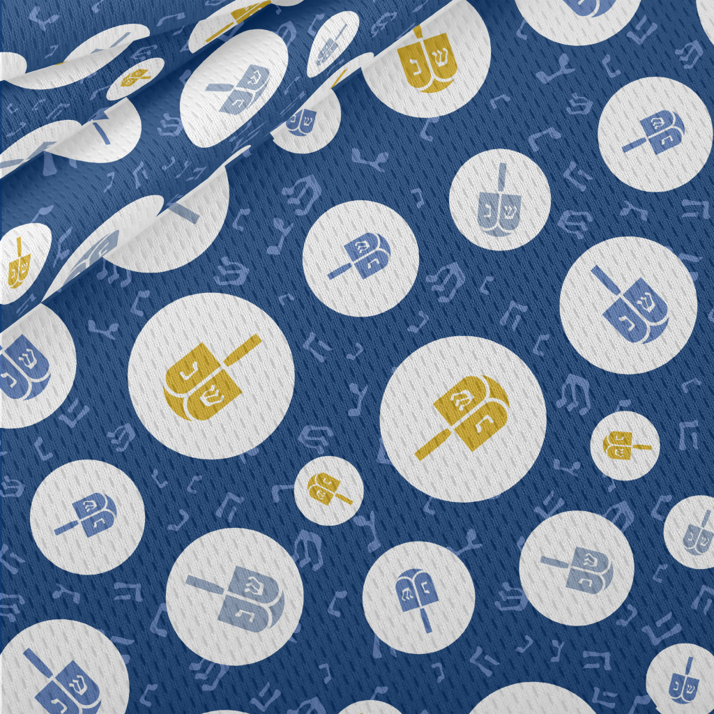 藍色和金色陀螺圖案鳥眼布(幅寬160公分)