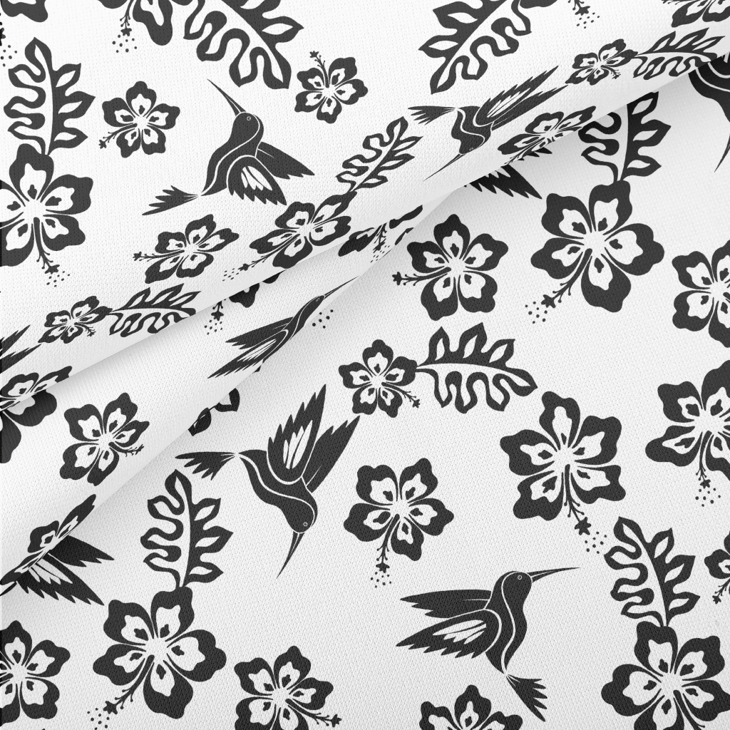 黑白芙蓉花與蜂鳥羅馬布(幅寬160公分)