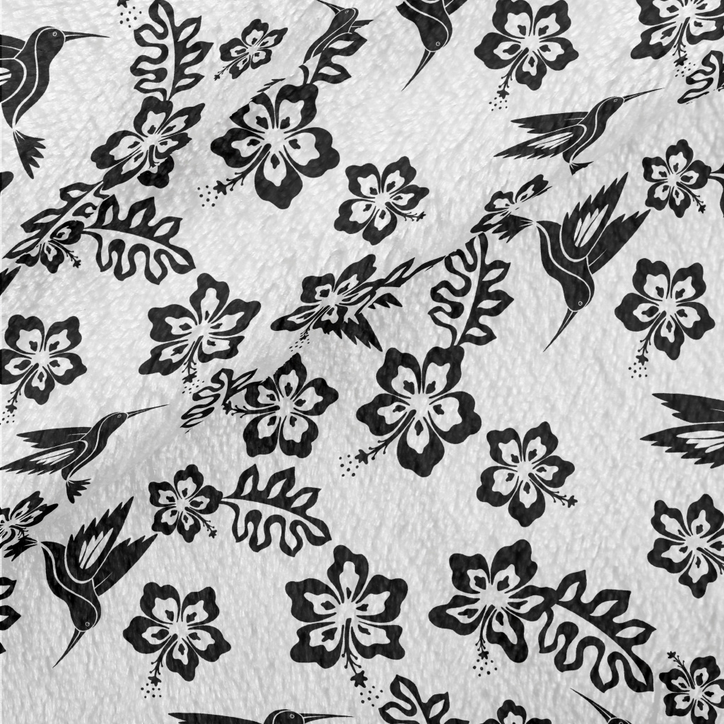 黑白芙蓉花與蜂鳥法蘭絨(幅寬150公分)