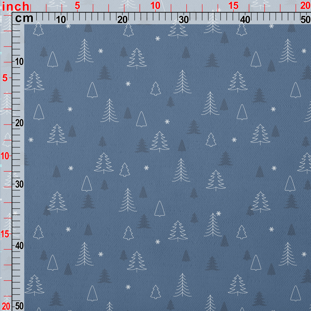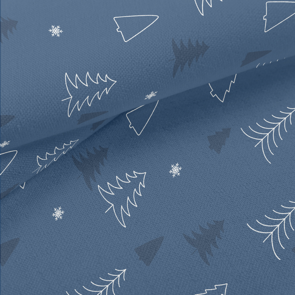 簡約聖誕樹和雪花竹節麻(幅寬150公分)