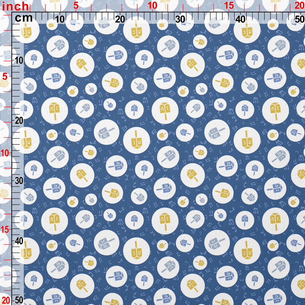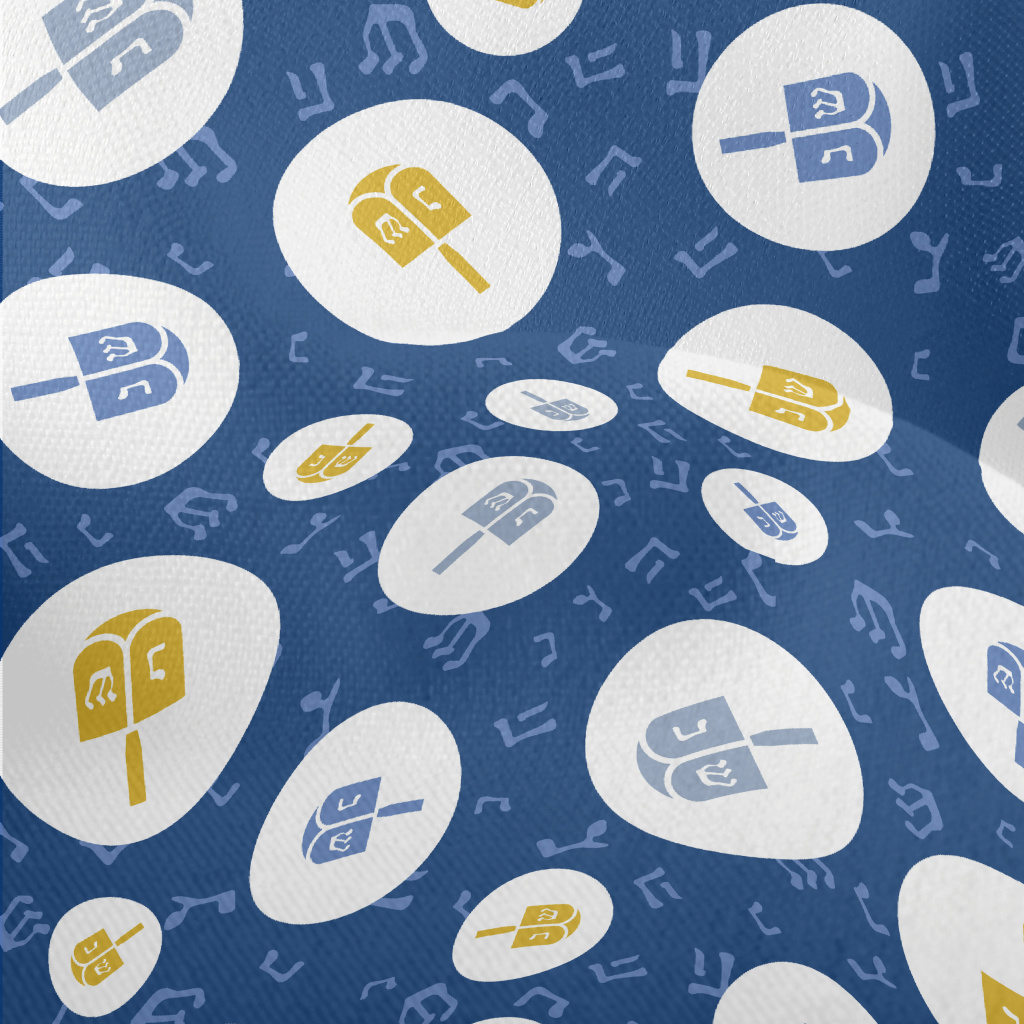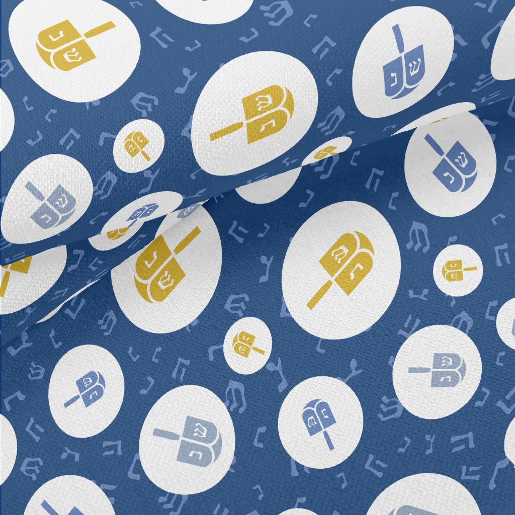 藍色和金色陀螺圖案竹節麻(幅寬150公分)