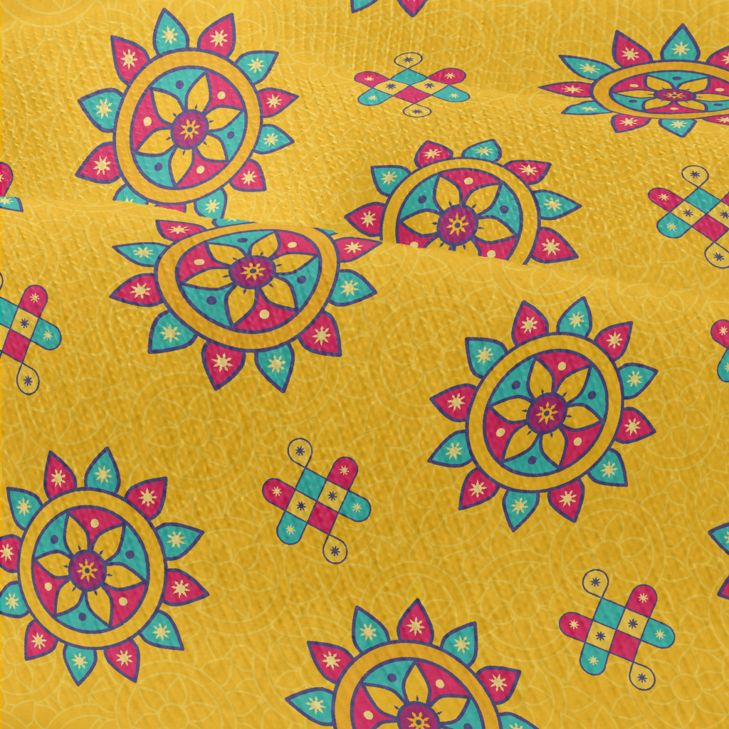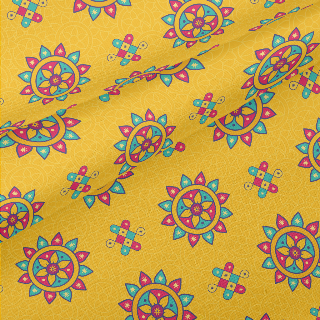 彩色精緻花朵幾何圖仿棉布(幅寬150公分)