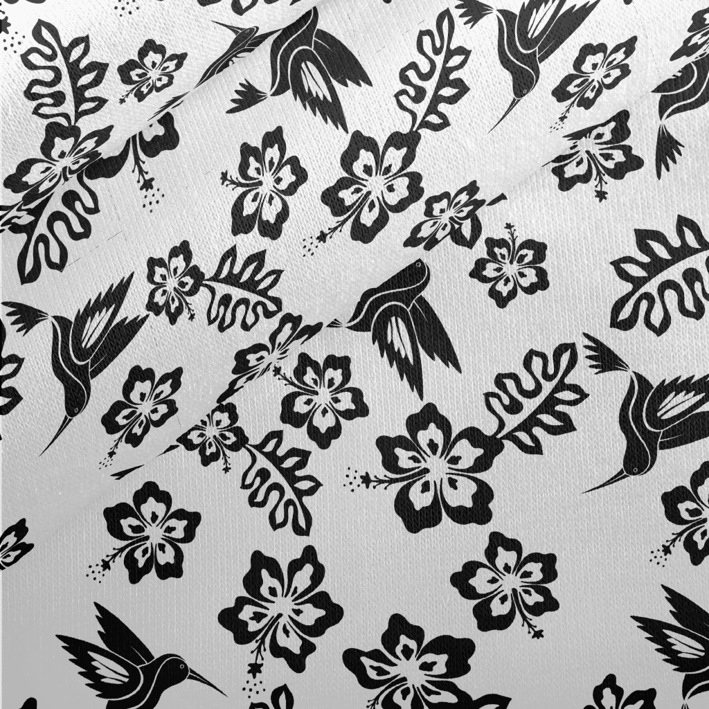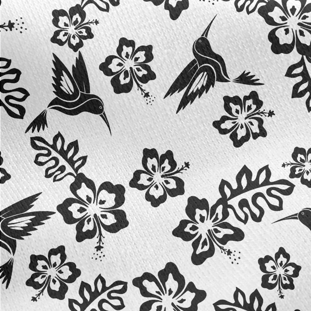 黑白芙蓉花與蜂鳥刷毛布(幅寬150公分)