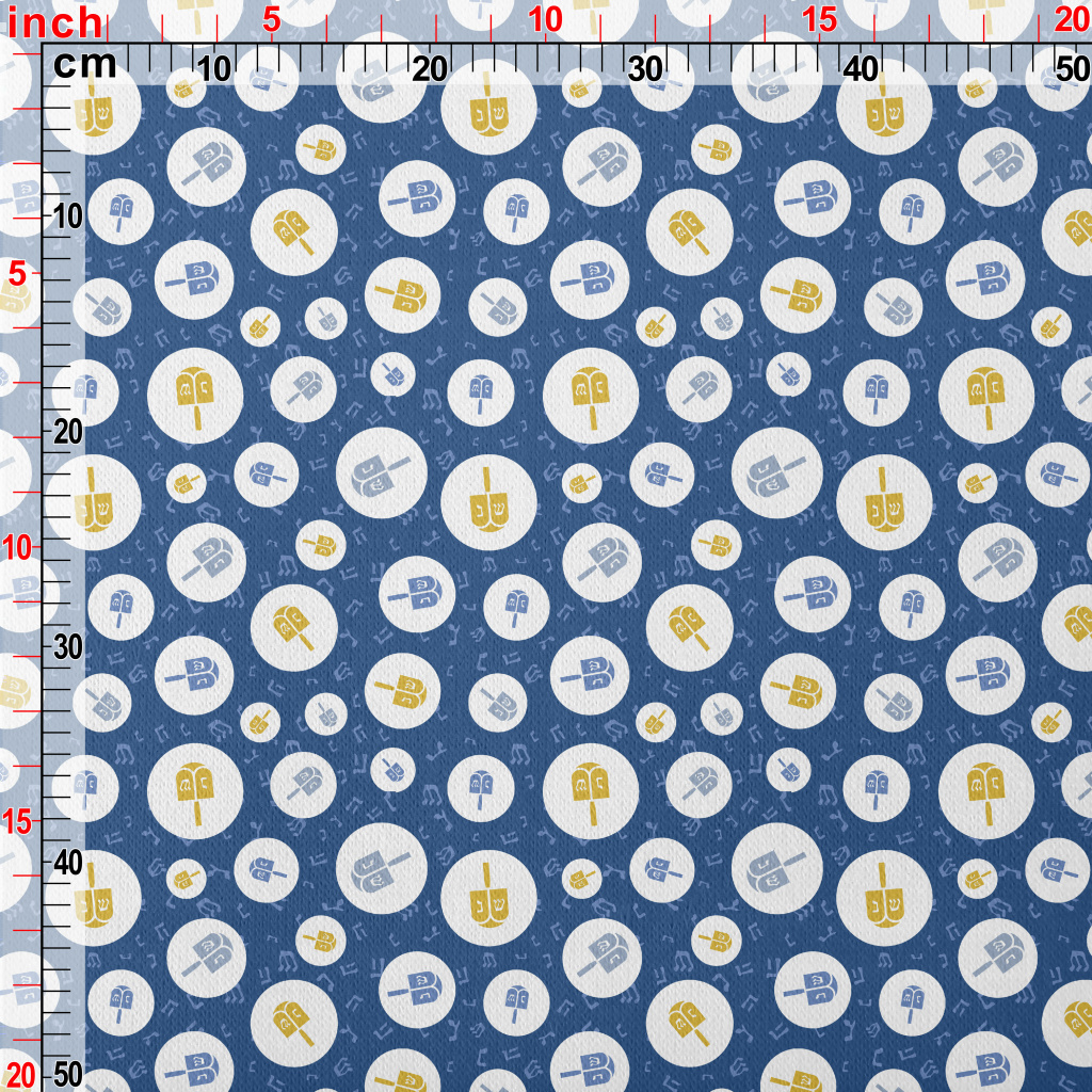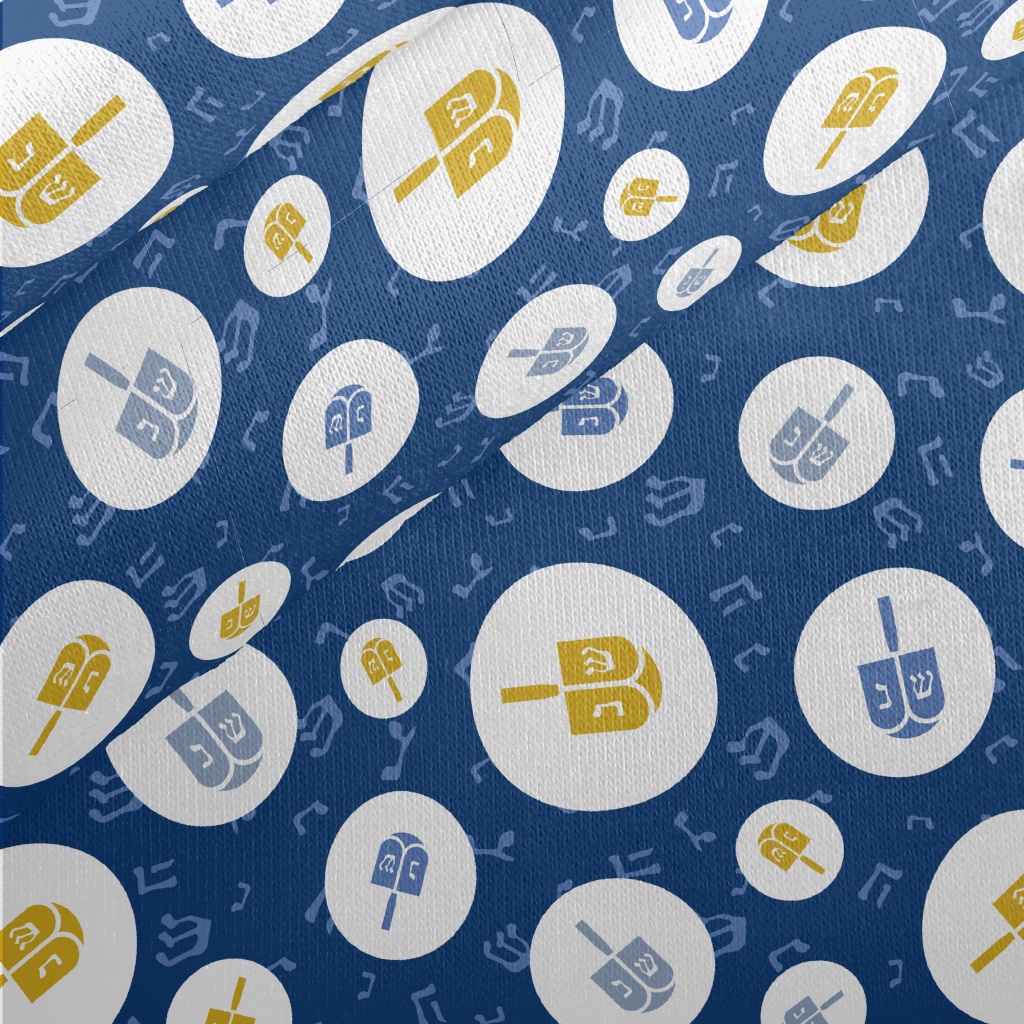 藍色和金色陀螺圖案刷毛布(幅寬150公分)