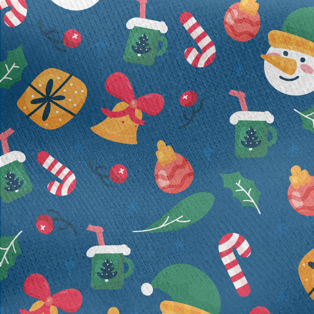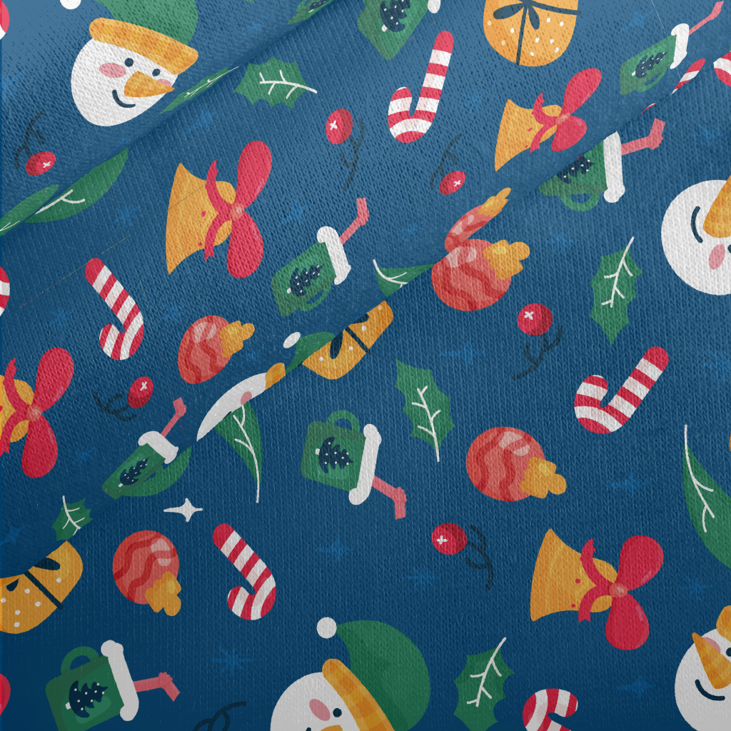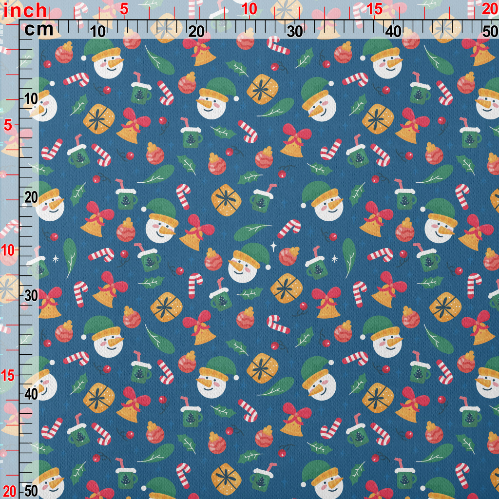 聖誕雪人和禮物鈴鐺刷毛布(幅寬150公分)