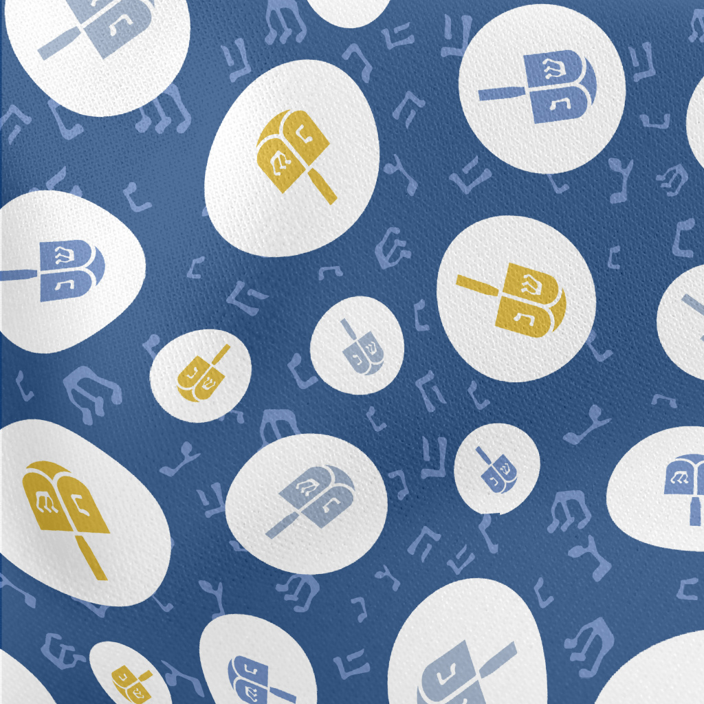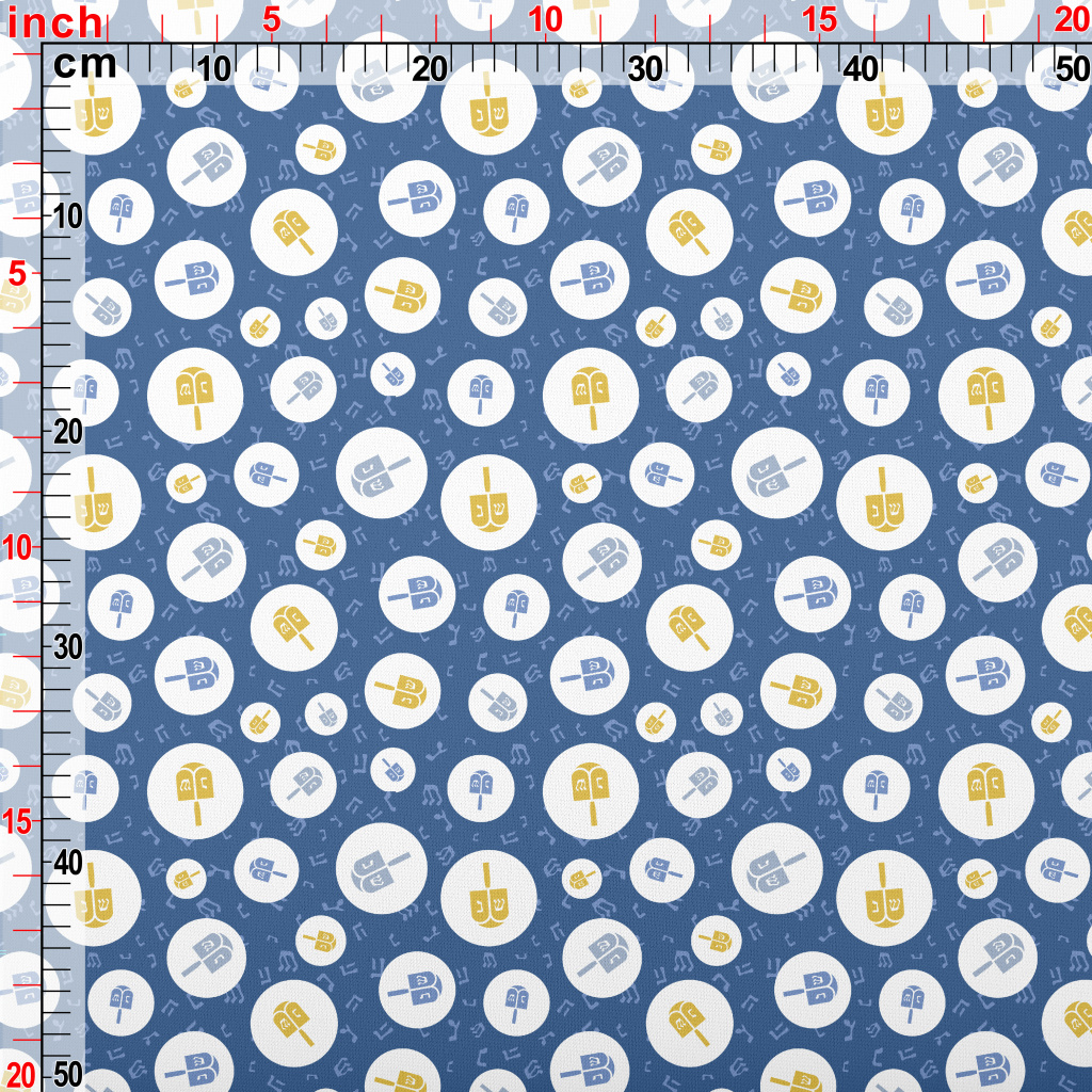 藍色和金色陀螺圖案薄棉布(幅寬150公分)