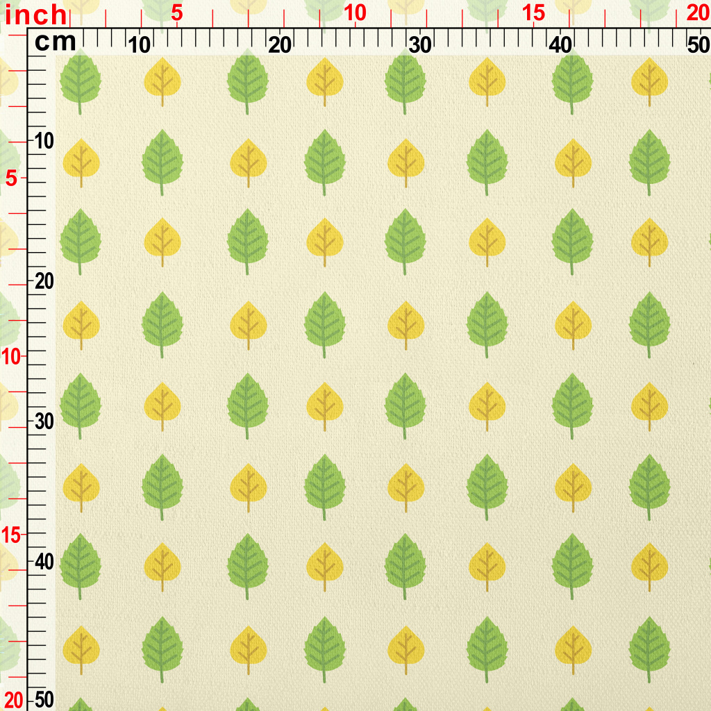 塗鴉綠色黃色葉子竹節麻(幅寬150公分)