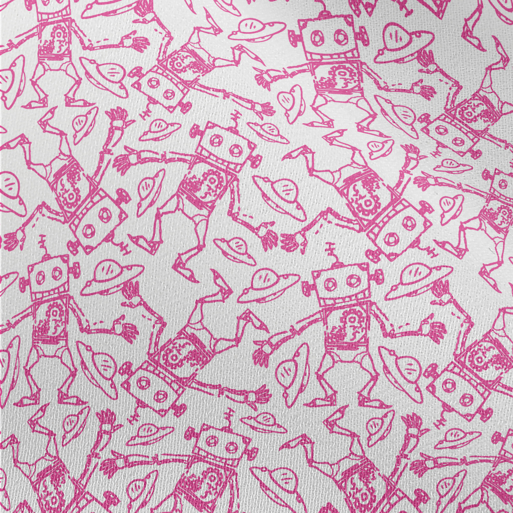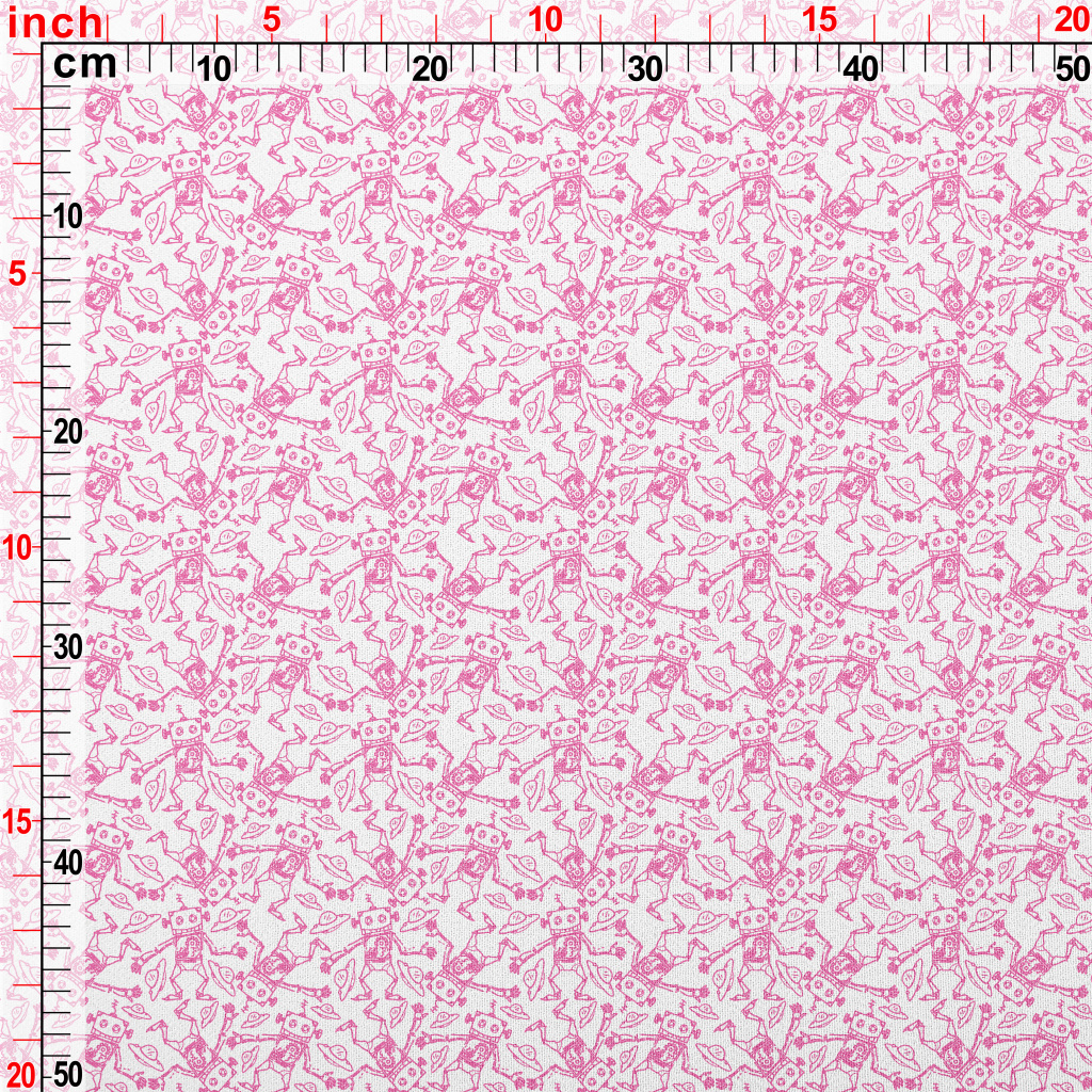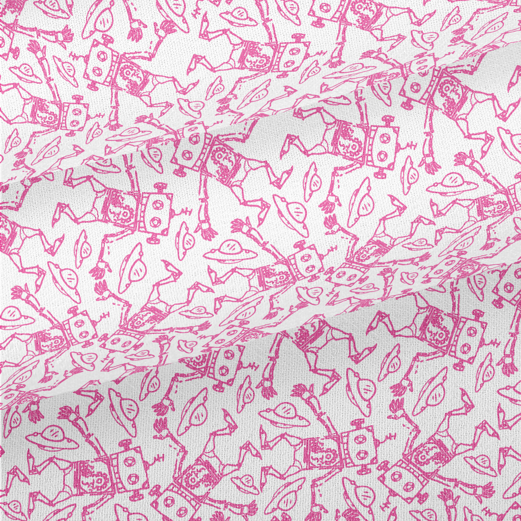 粉色塗鴉機器人和飛碟雪紡布(幅寬150公分)