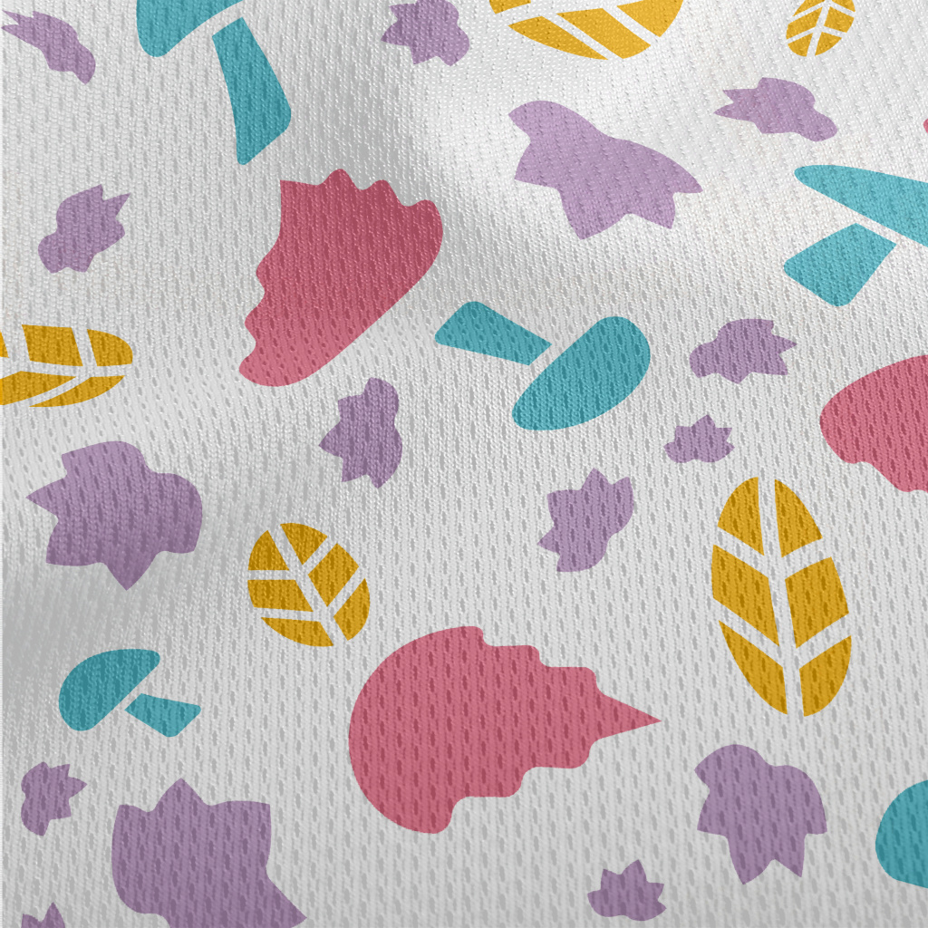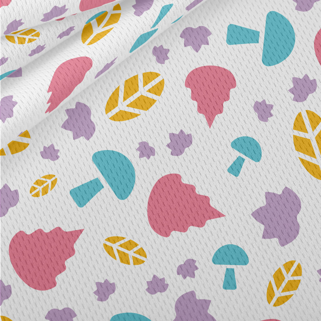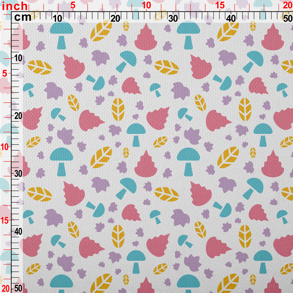 藍色香菇與彩色葉子鳥眼布(幅寬160公分)