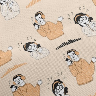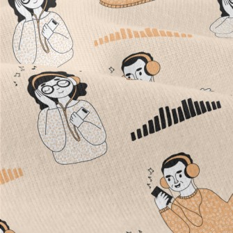 聽音樂的男生女生鳥眼布(幅寬160公分)