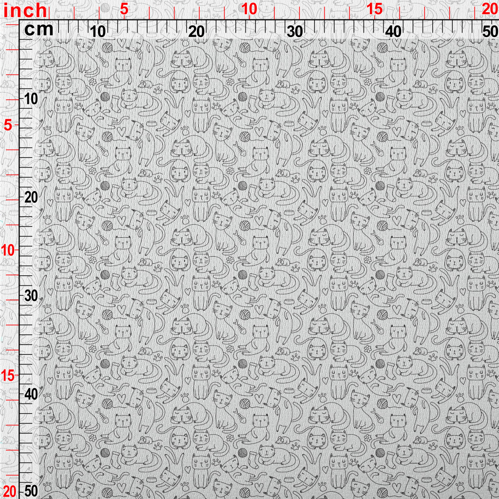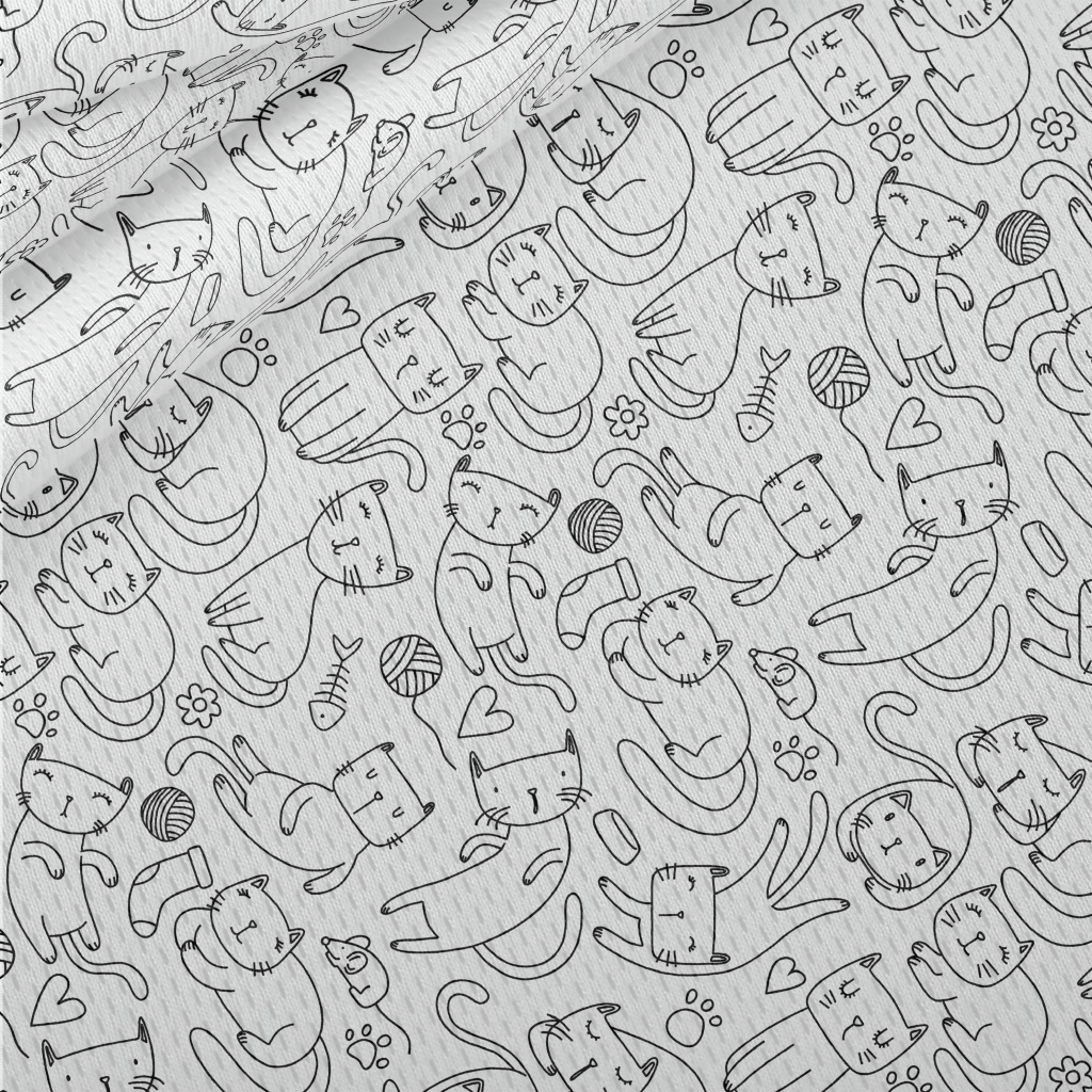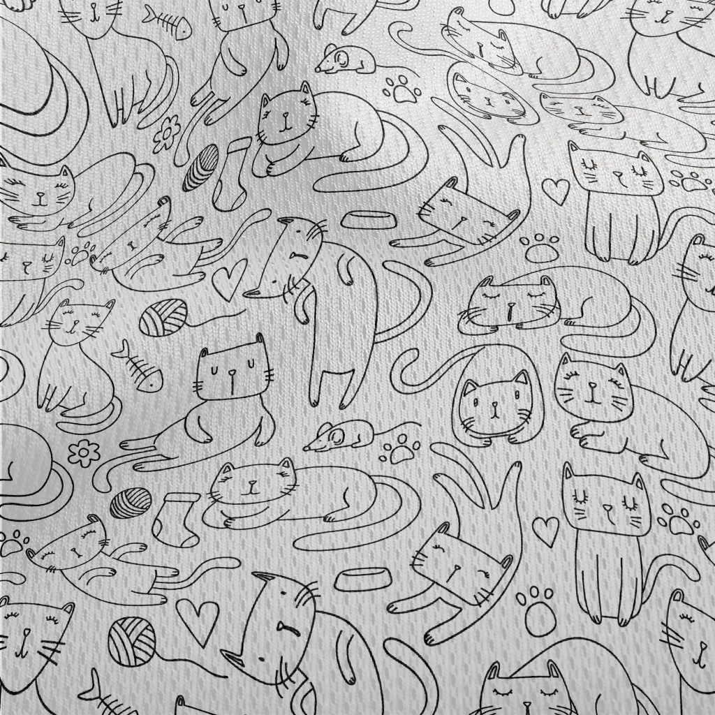線條塗鴉玩耍貓咪鳥眼布(幅寬160公分)