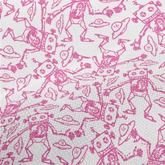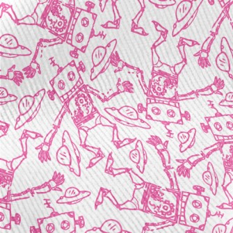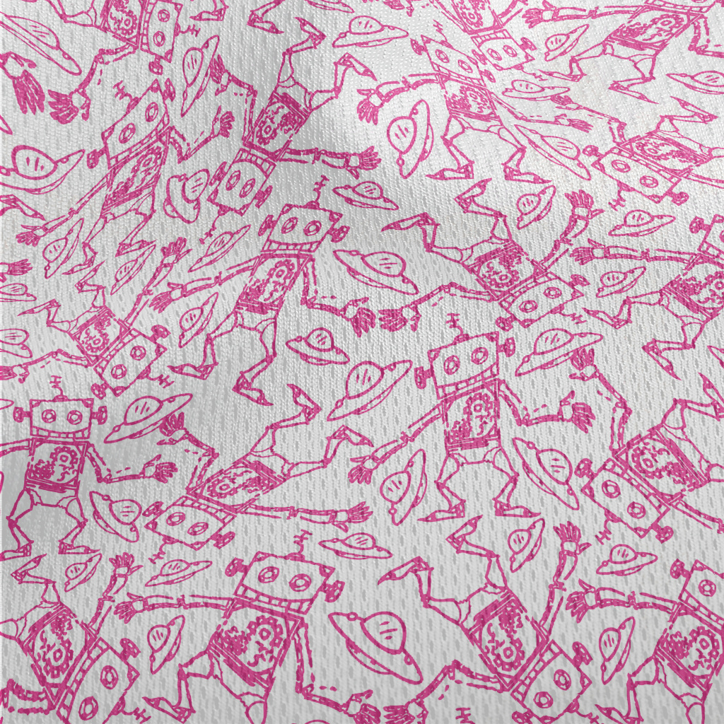 粉色塗鴉機器人和飛碟鳥眼布(幅寬160公分)