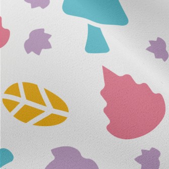 藍色香菇與彩色葉子毛巾布(幅寬160公分)