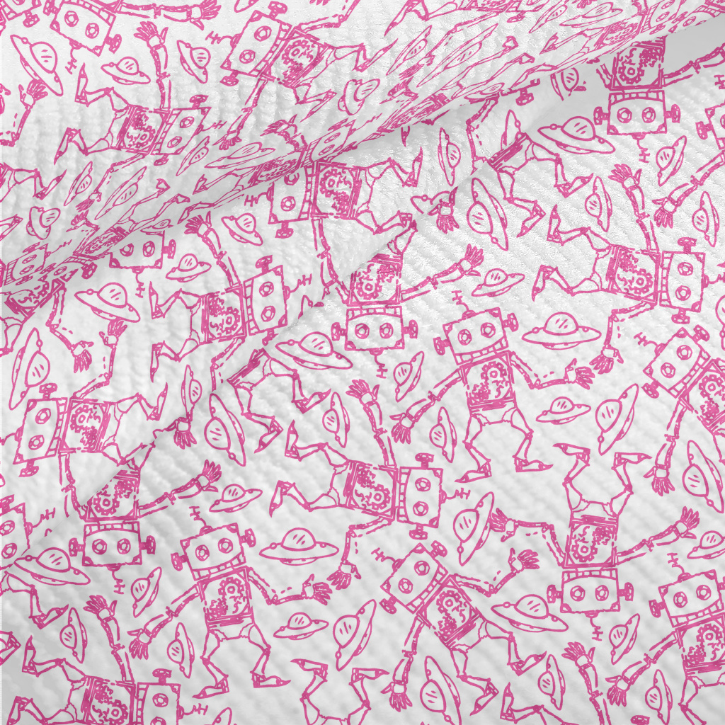 粉色塗鴉機器人和飛碟毛巾布(幅寬160公分)